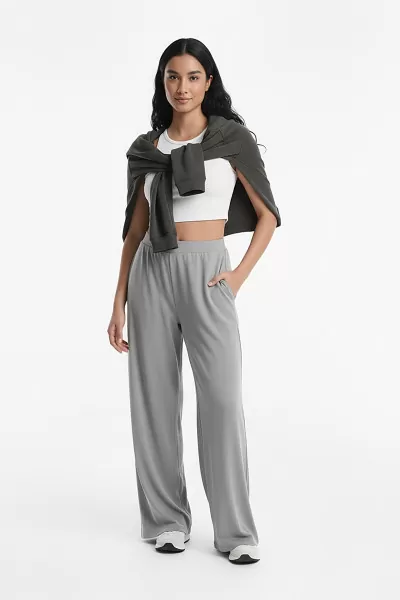 Gri Üç İplik Rahat Kesim Şardonlu Kadın Eşofman Altı
