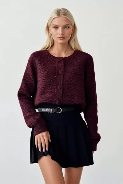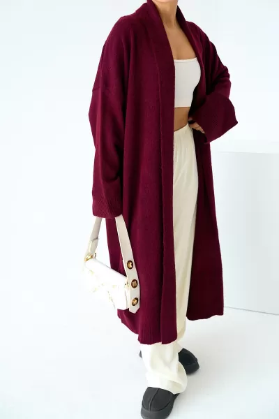 Önü Açık Şal Yaka Bordo Triko Kadın Hırka