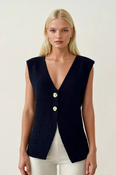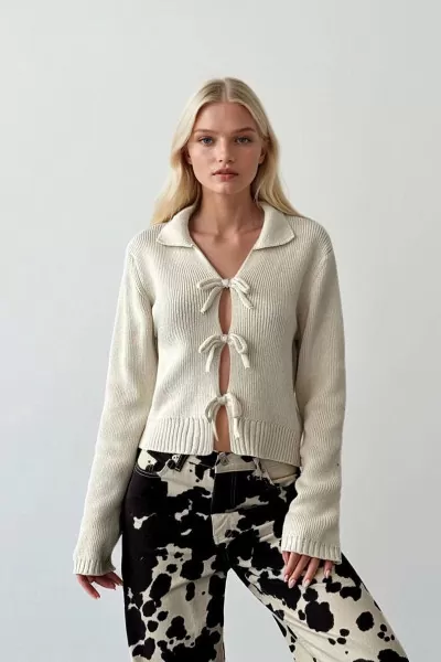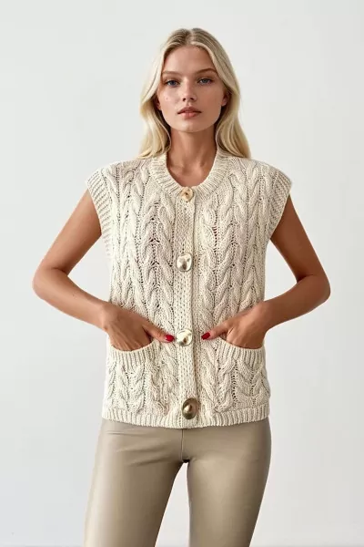 Asimetrik Yaka Ekru Örme Kadın Kazak