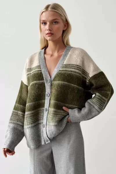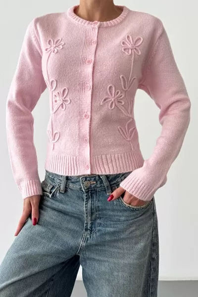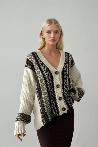 Siyah Beyaz Uzay Desenli Kadın Triko Hırka