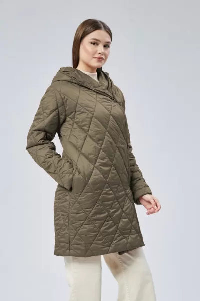 Kapüşonlu Kapitoneli Haki Kadın Mont