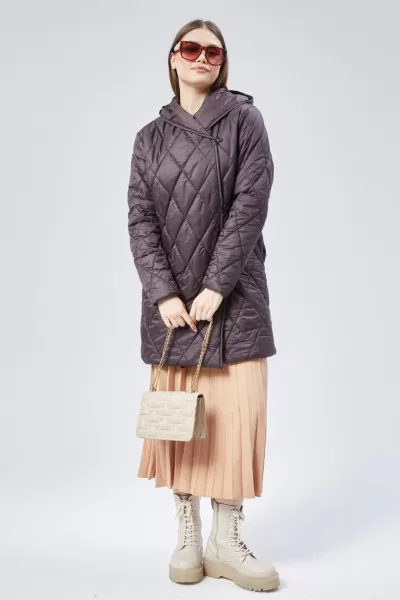 Kapüşonlu Kapitoneli Kahverengi Kadın Mont