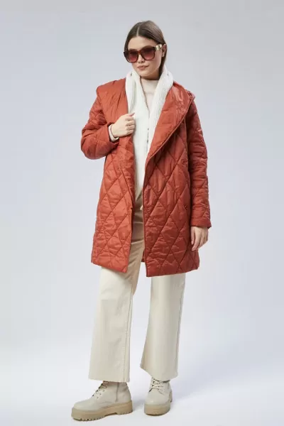 Kapüşonlu Kapitoneli Tarçın Kadın Mont