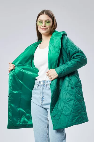 Kapüşonlu Kapitoneli Yeşil Kadın Mont