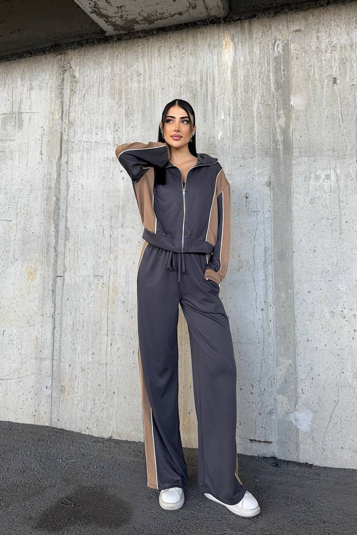 Antrasit Camel Renk Bloklu Kadın Eşofman Takımı