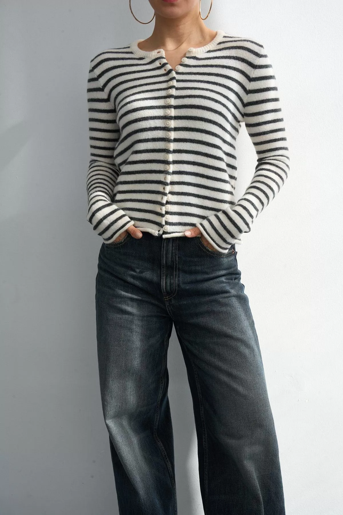 Antrasit Krem Çizgili Triko Kadın Hırka Antrasit Krem Çizgili Triko Kadın Hırka Antrasit Krem Çizgili Triko Kadın Hırka