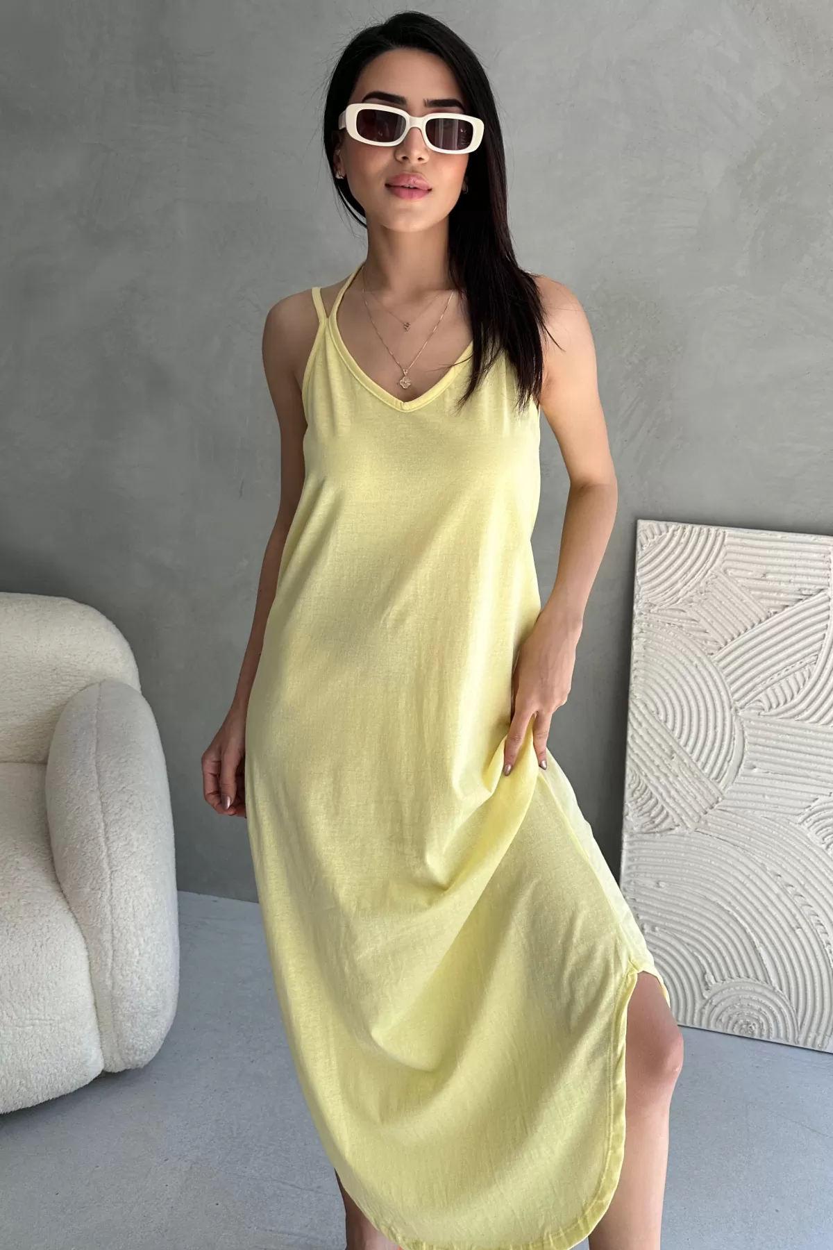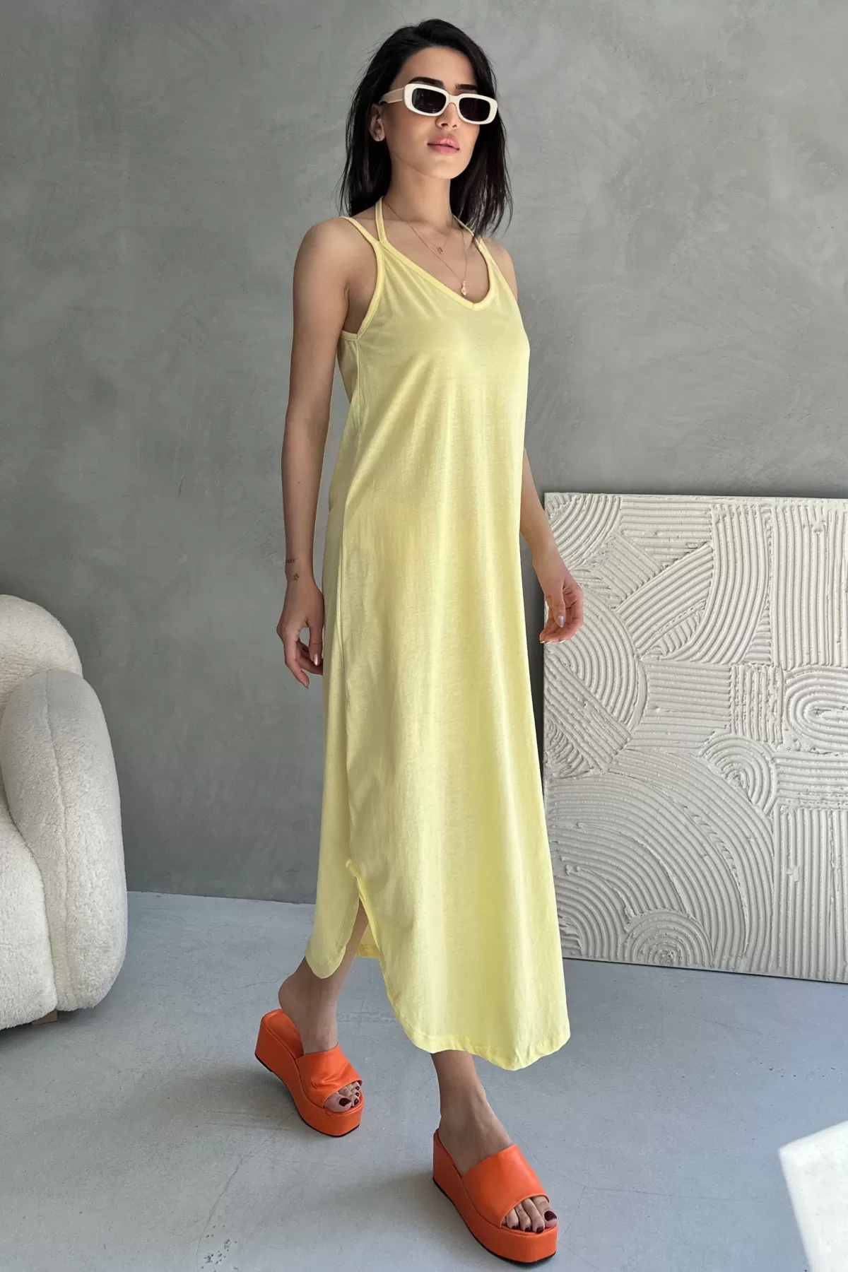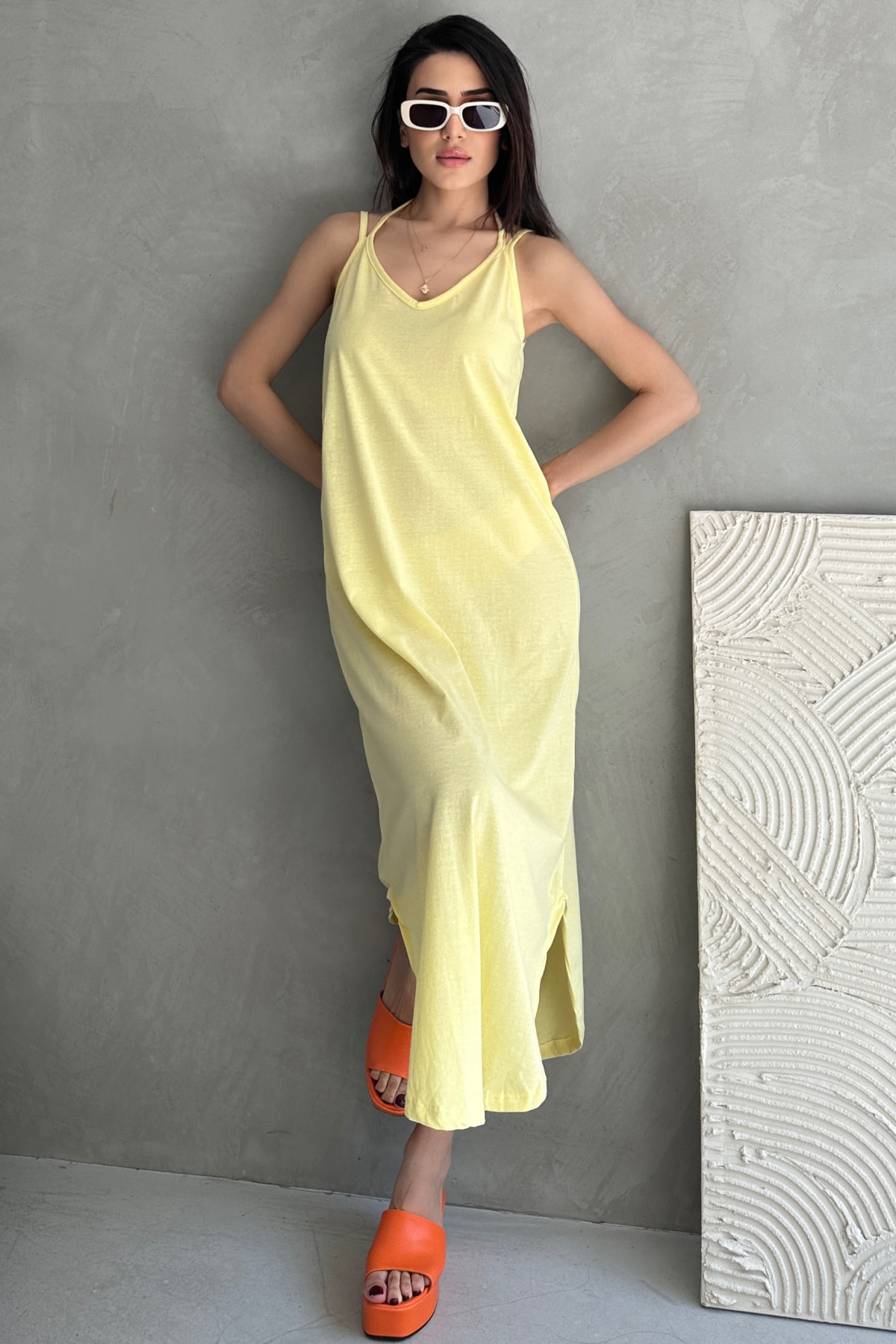 Askılı V Yaka Sarı Midi Elbise Askılı V Yaka Sarı Midi Elbise Askılı V Yaka Sarı Midi Elbise Askılı V Yaka Sarı Midi Elbise