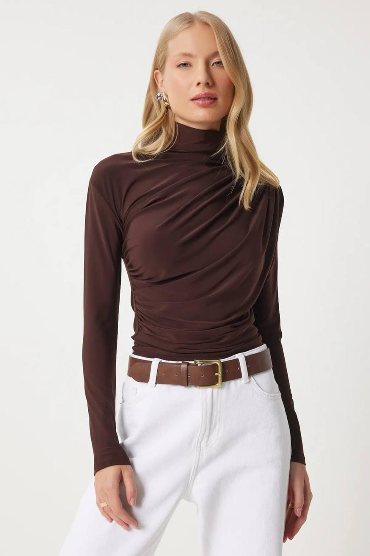 Facebook Pixel Balıkçı Yaka Drape Detaylı Kahverengi Sandy Bluz, Fiyatı 229.22 TL | Nare Giyim