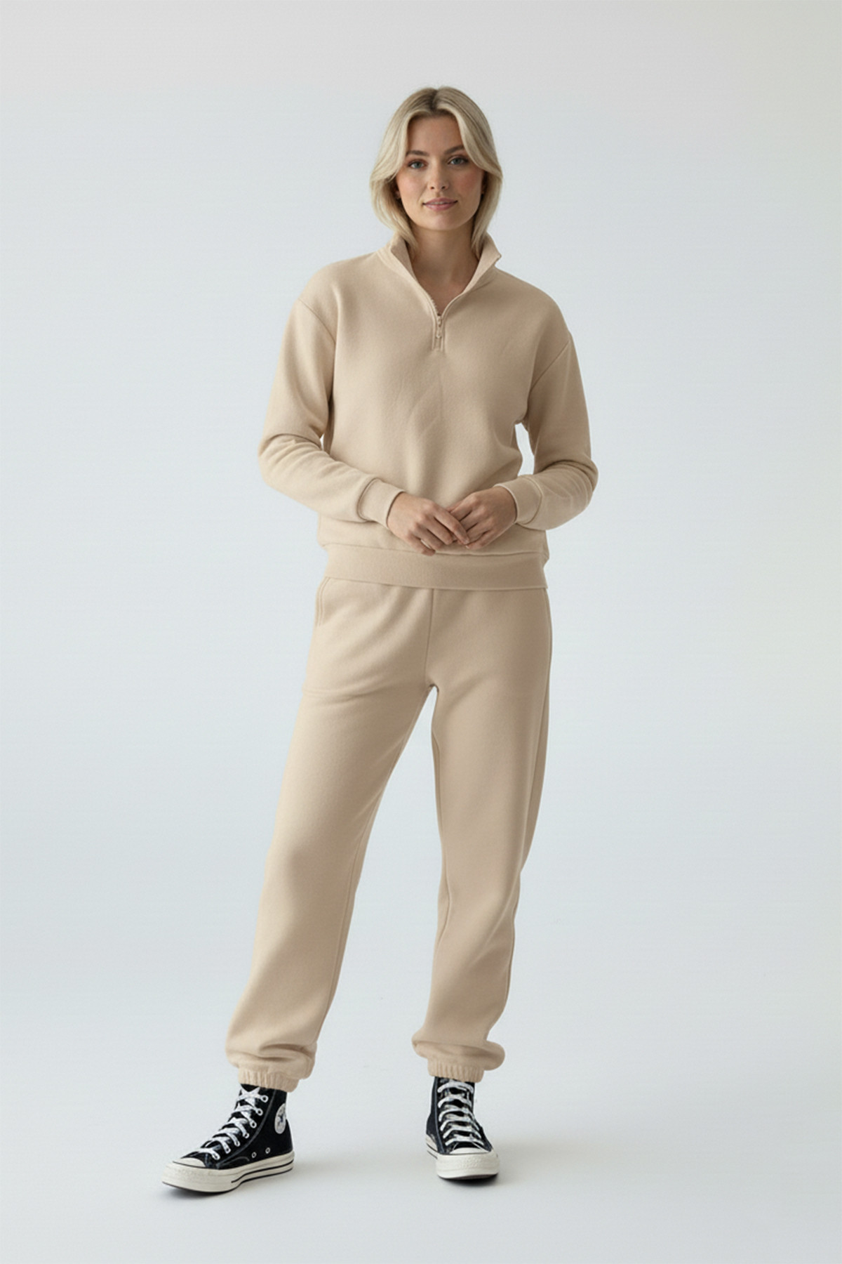 %100 pamuklu üç iplik kumaştan imal edilmiştir.