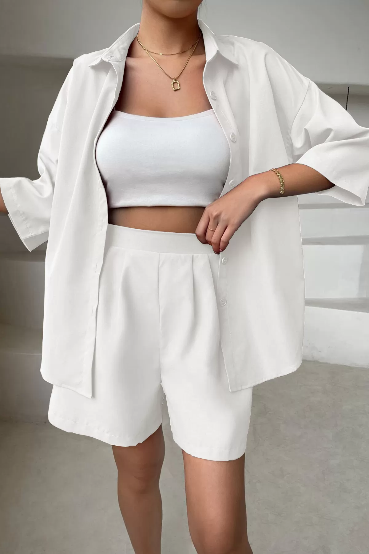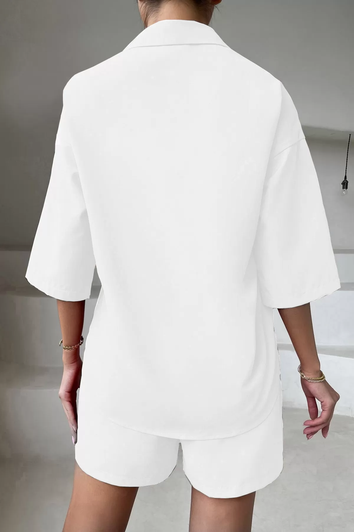 Beyaz Gömlek Şort Kadın İkili Takım Beyaz Gömlek Şort Kadın İkili Takım
