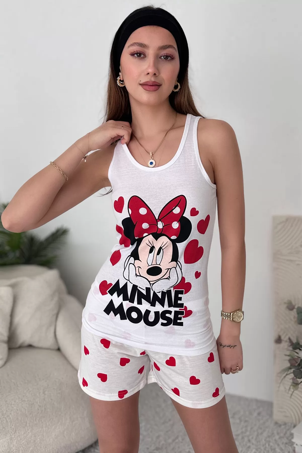 Beyaz Kırmızı Pamuklu Şort Atlet Kadın Pijama Takımı