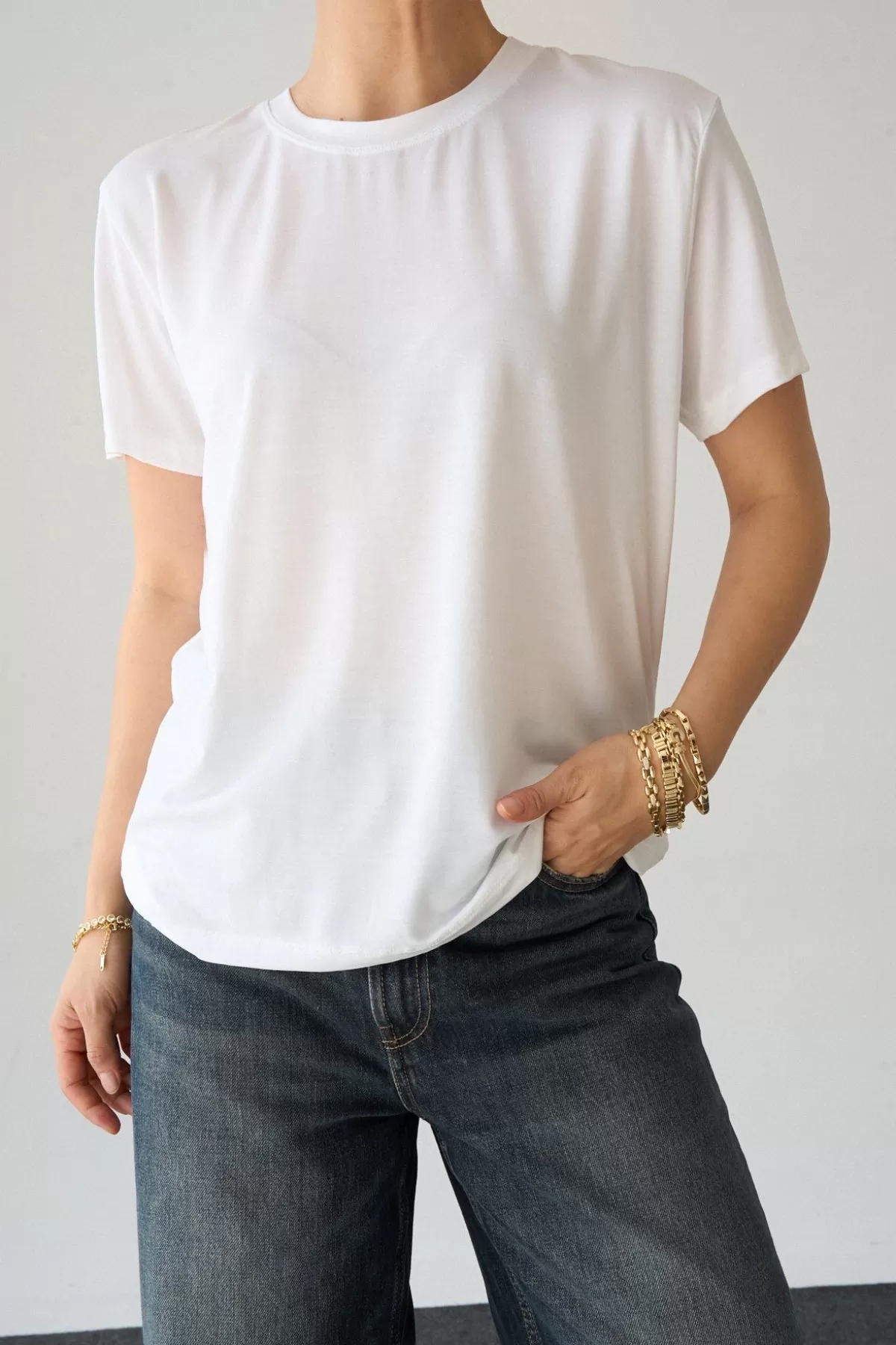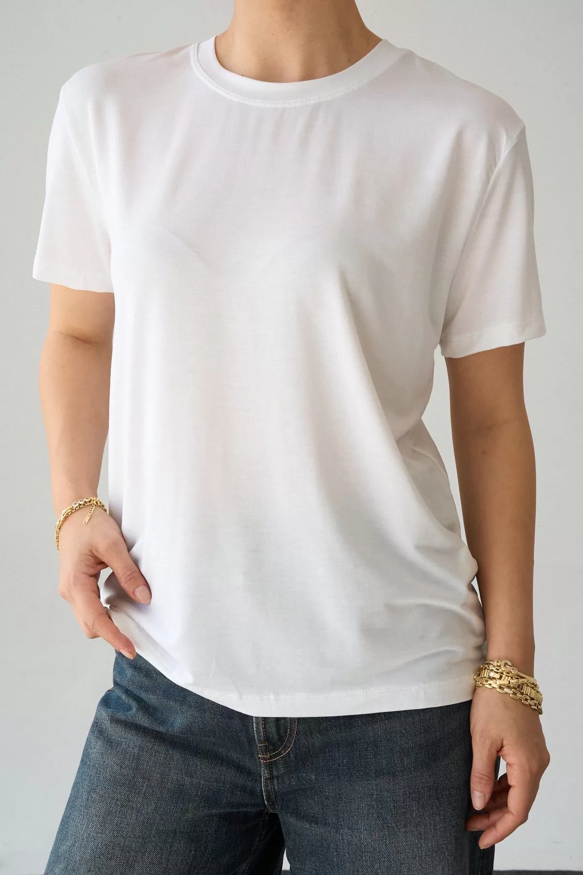 Beyaz Pamuklu Basic Kadın Tişört