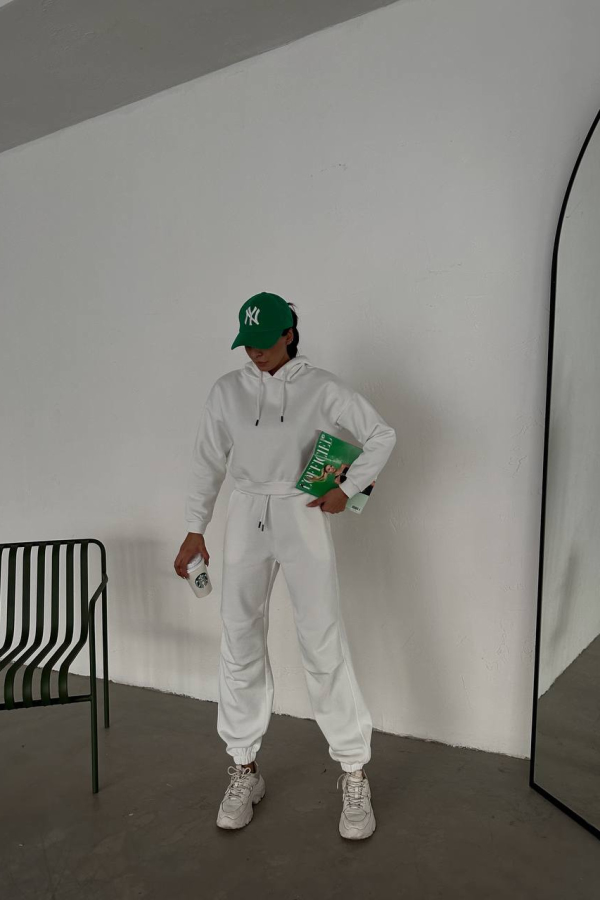 Yüzde yüz pamuklu kumaş Beyaz Sweatshirt Eşofman Altı Kadın İkili Takım