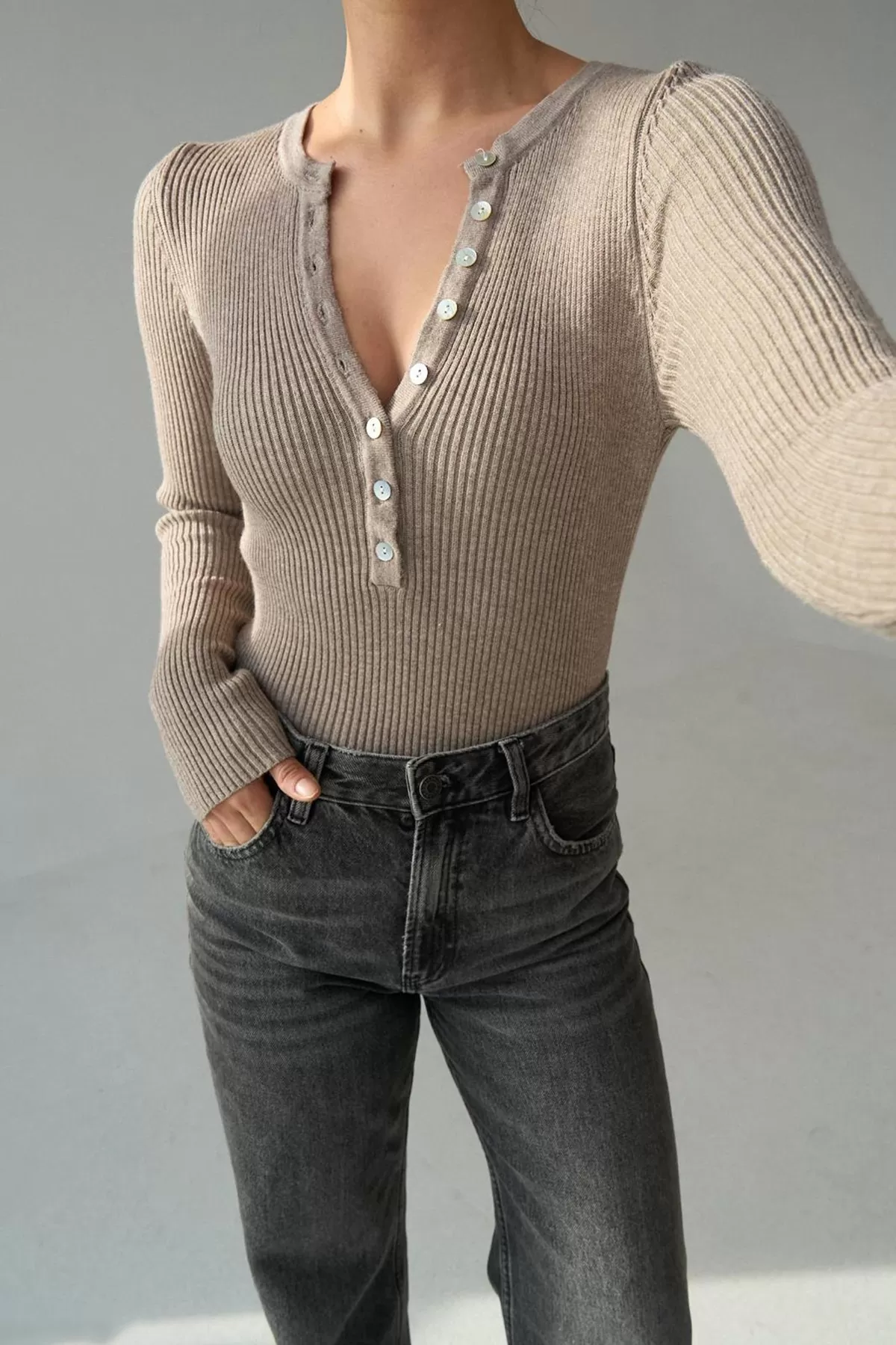 Facebook Pixel Bisiklet Yaka Düğmeli Bej Triko Kadın Kazak, Fiyatı 659.72 TL | Nare Giyim