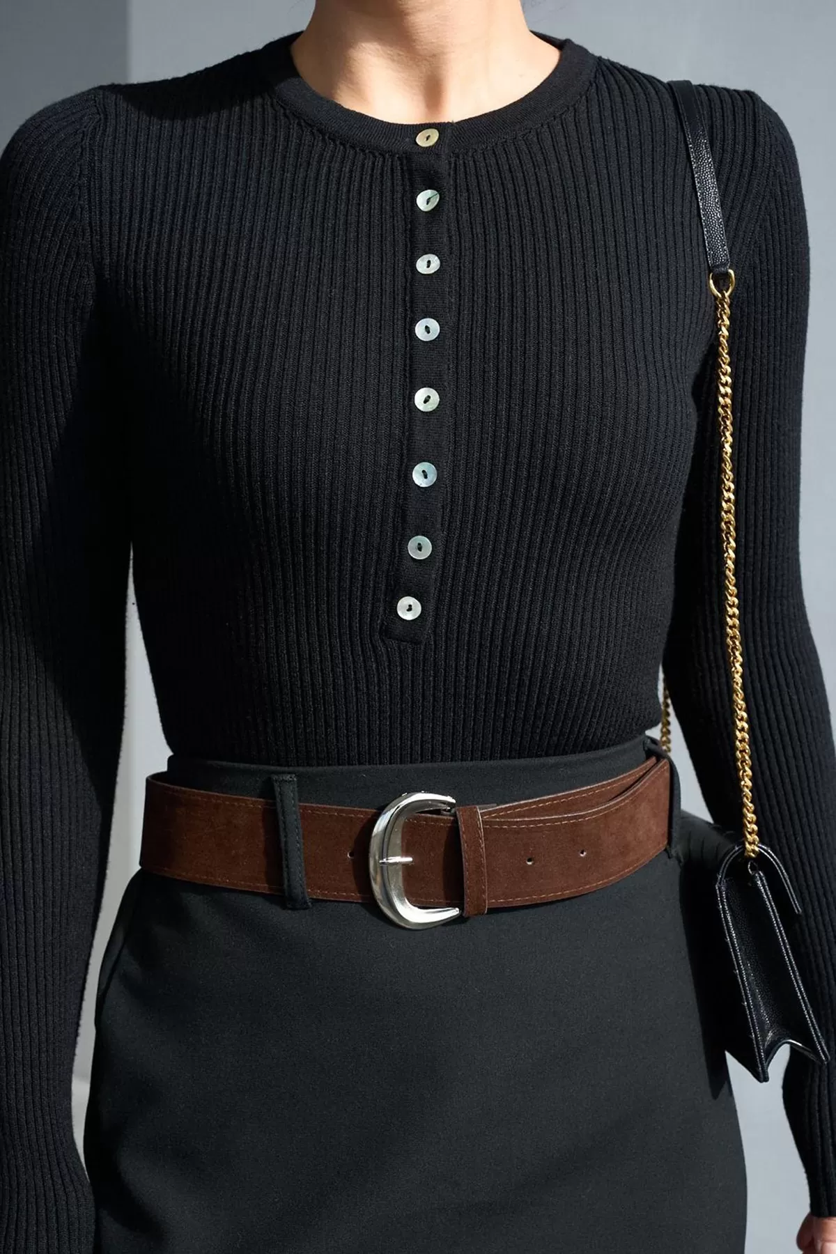 Facebook Pixel Bisiklet Yaka Düğmeli Siyah Triko Kadın Kazak, Fiyatı 659.72 TL | Nare Giyim