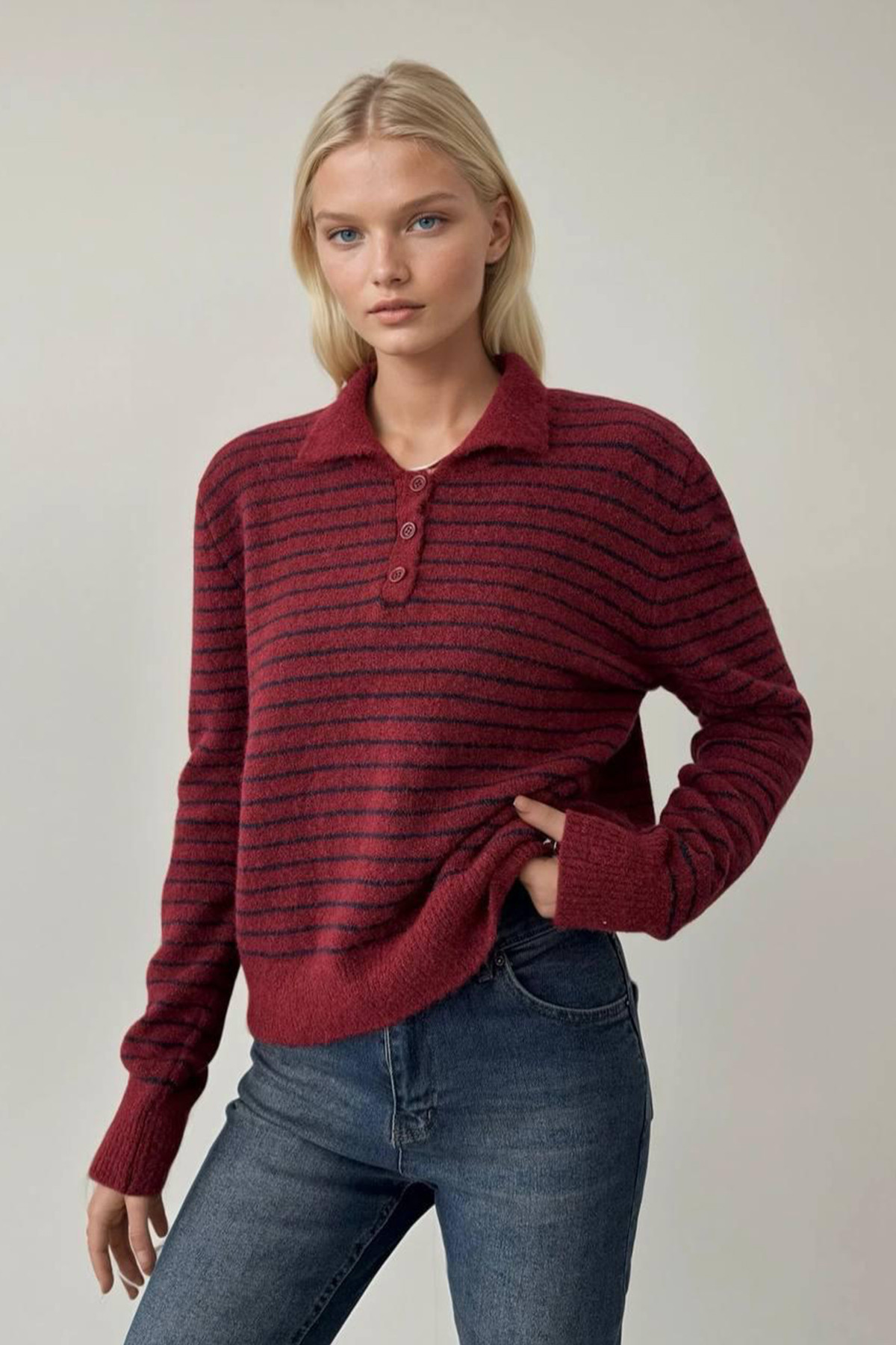 Bordo Siyah Çizgili Triko Kadın Kazak
