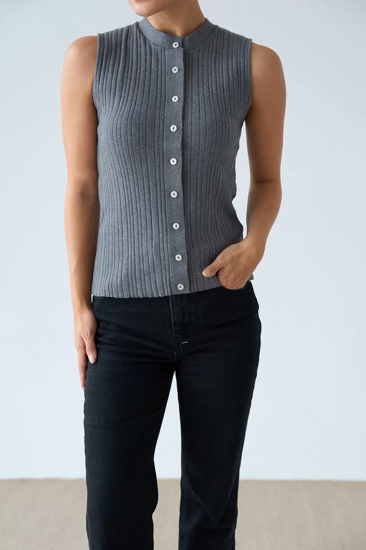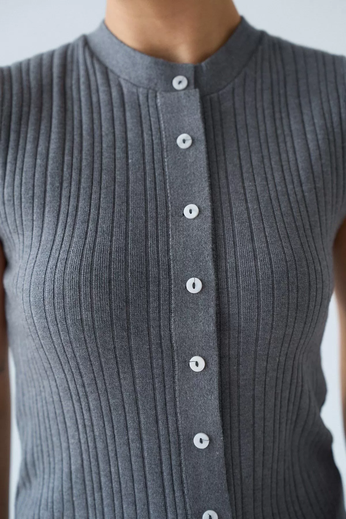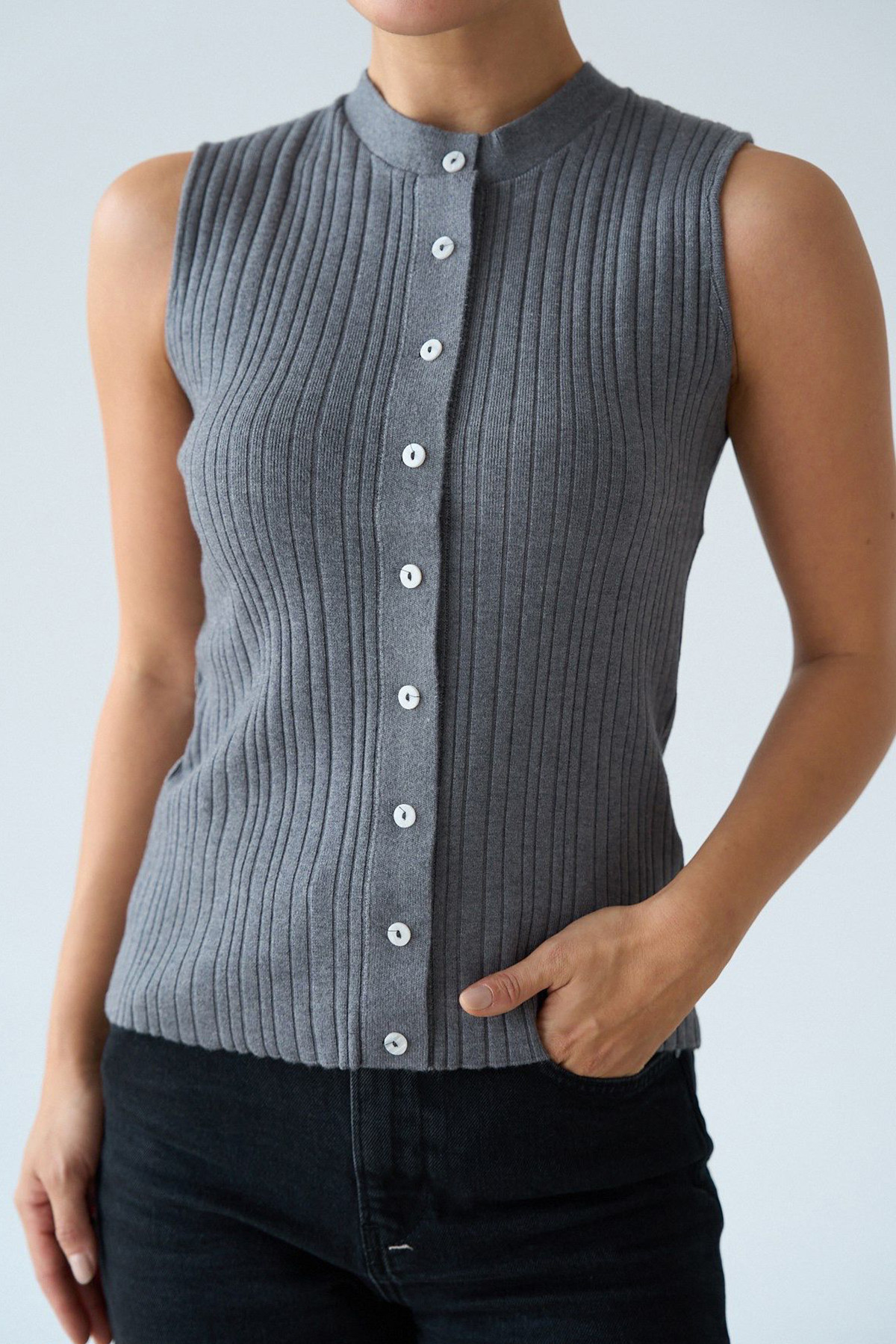 Düğmeli Antrasit Triko Yelek Bluz Düğmeli Antrasit Triko Yelek Bluz Düğmeli Antrasit Triko Yelek Bluz