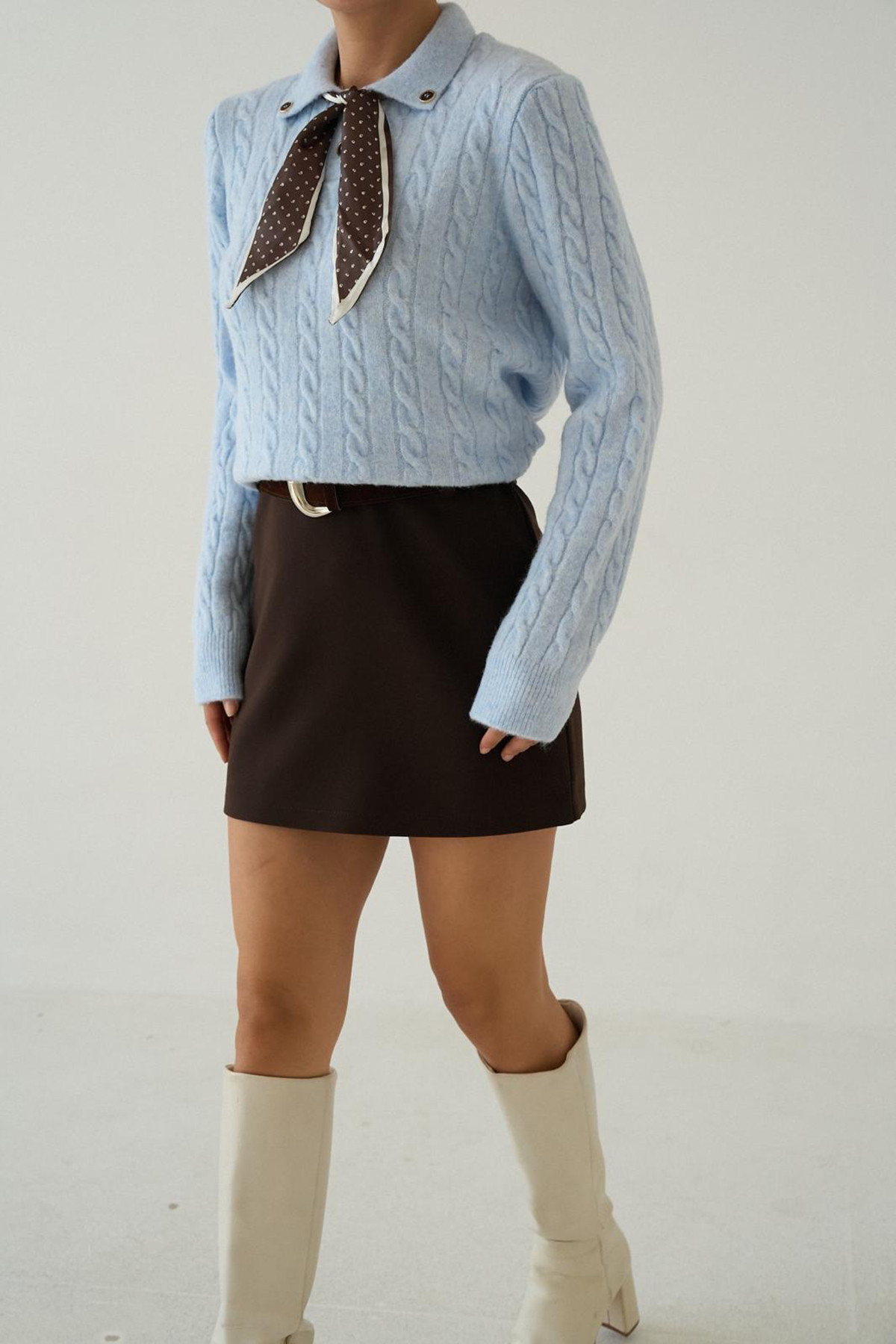 Facebook Pixel Fular Detaylı Uzun Kollu Bebe Mavi Triko Kadın Kazak, Fiyatı 659.72 TL | Nare Giyim