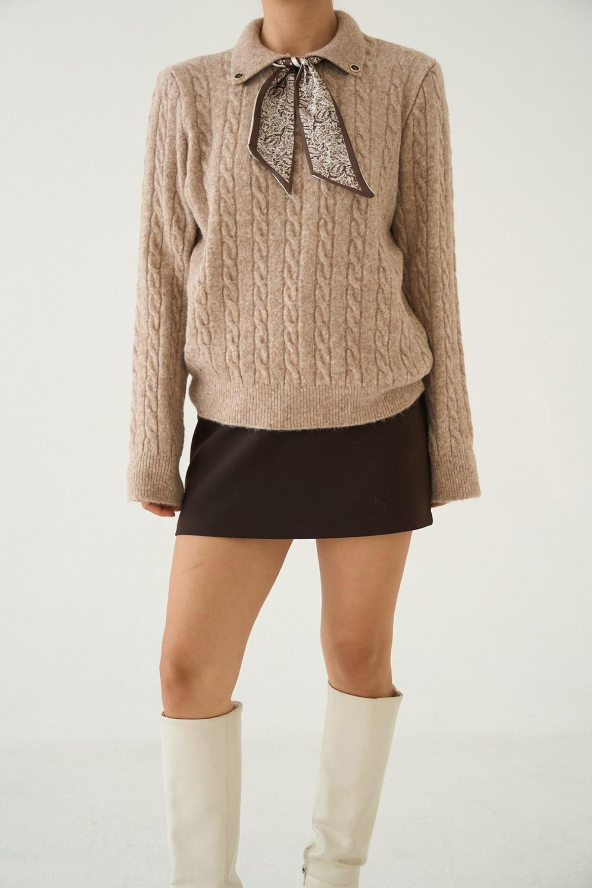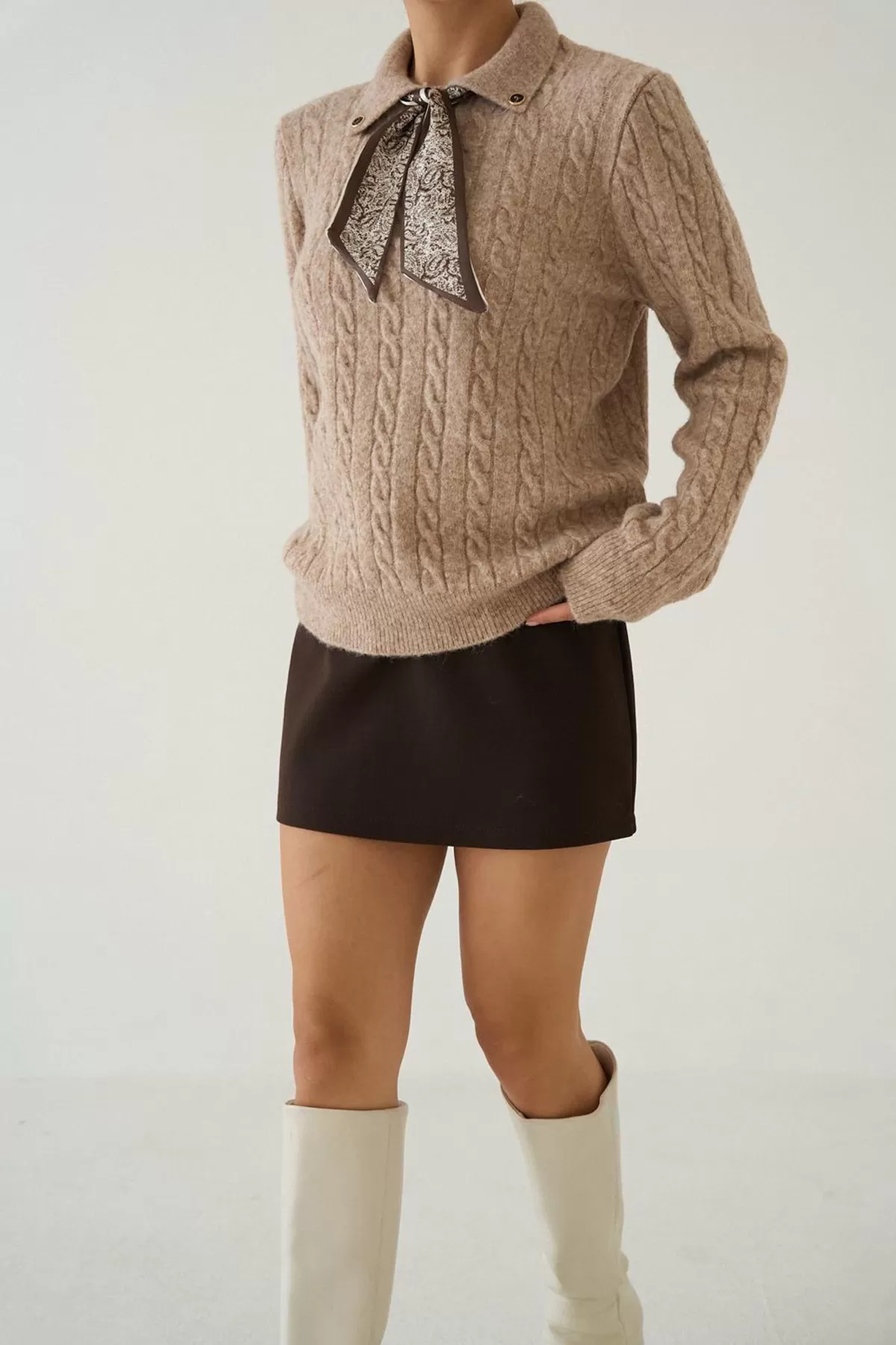 Fular Detaylı Uzun Kollu Bej Triko Kadın Kazak Fular Detaylı Uzun Kollu Bej Triko Kadın Kazak Fular Detaylı Uzun Kollu Bej Triko Kadın Kazak
