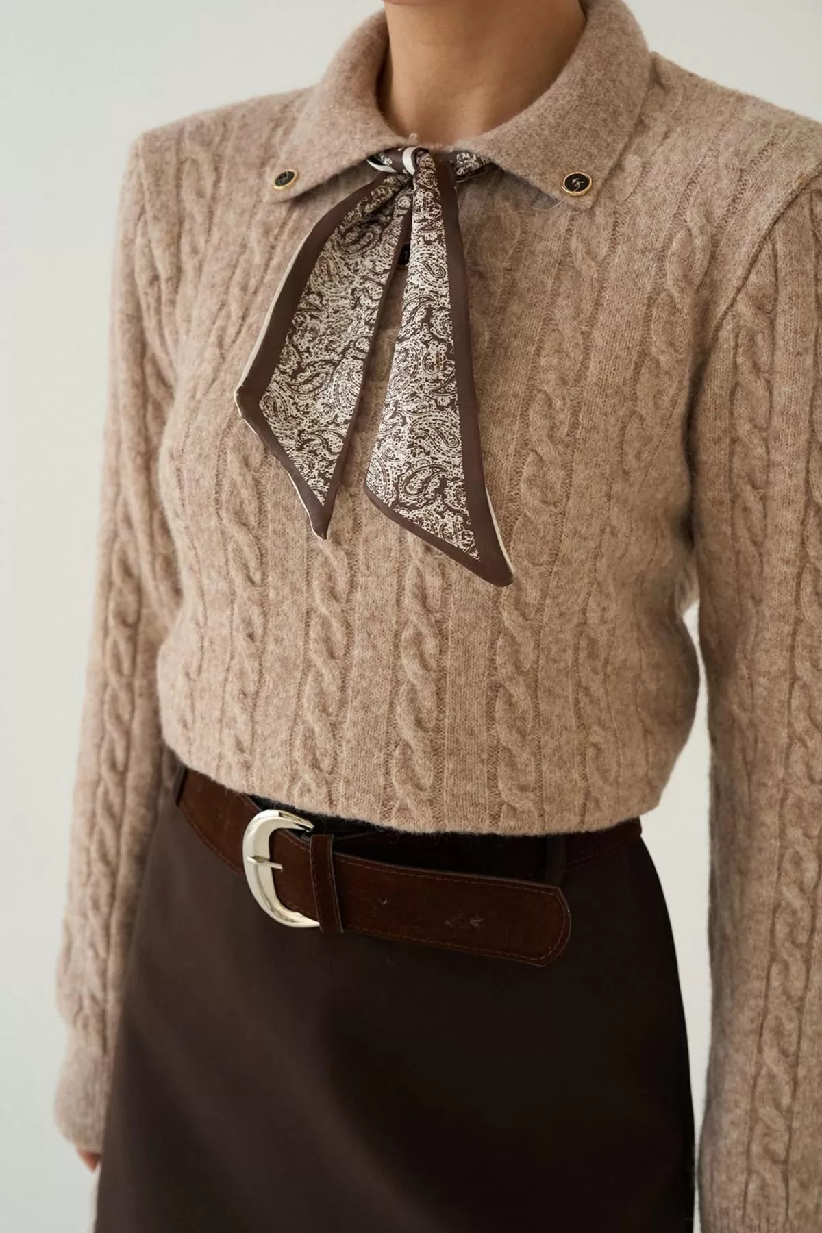 Facebook Pixel Fular Detaylı Uzun Kollu Bej Triko Kadın Kazak, Fiyatı 659.72 TL | Nare Giyim