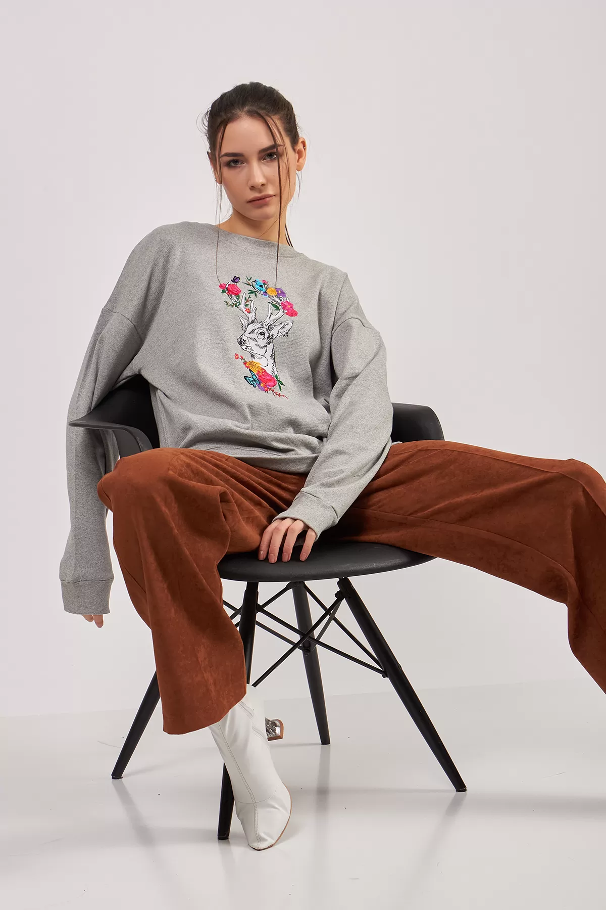 Geyik Nakışlı Grimelanj Kadın Sweatshirt