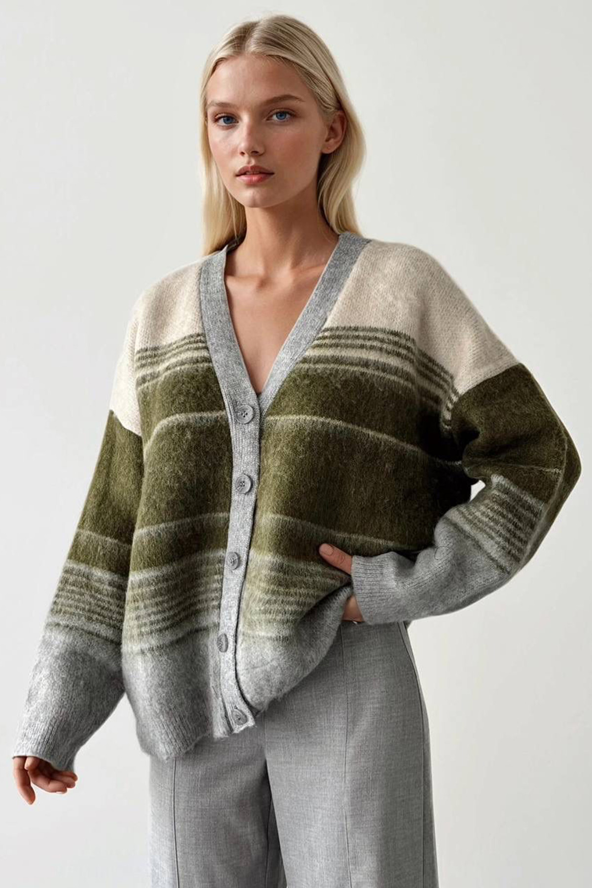 Facebook Pixel Gri Yeşil Triko Kadın Hırka, Fiyatı 559.97 TL | Nare Giyim