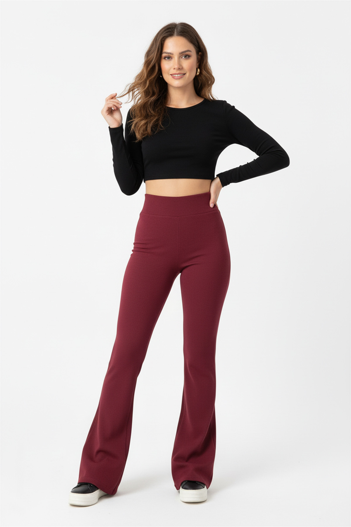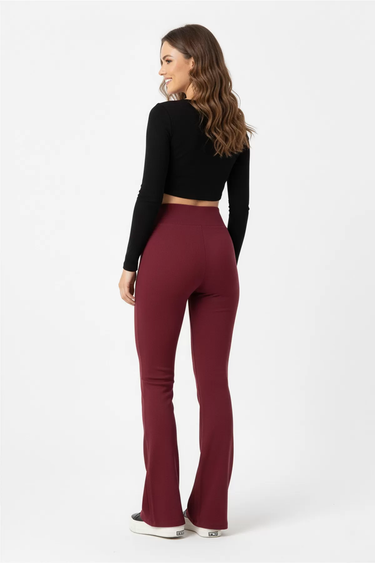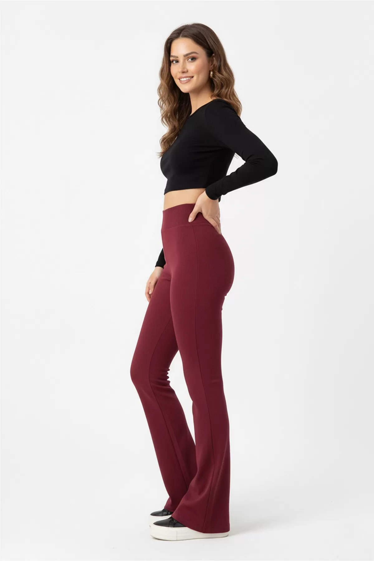 İçi Şardonlu İspanyol Paça Bordo Kadın Tayt Pantolon