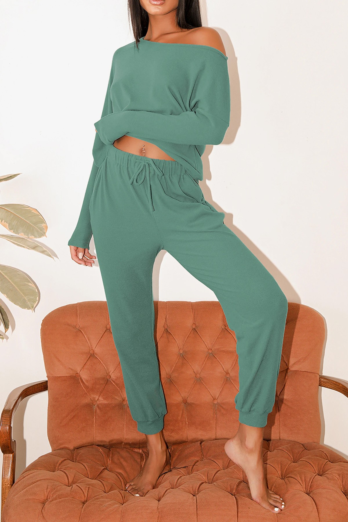 Kayık Yaka Cam Göbeği Kaşkorse Kadın Eşofman Takımı