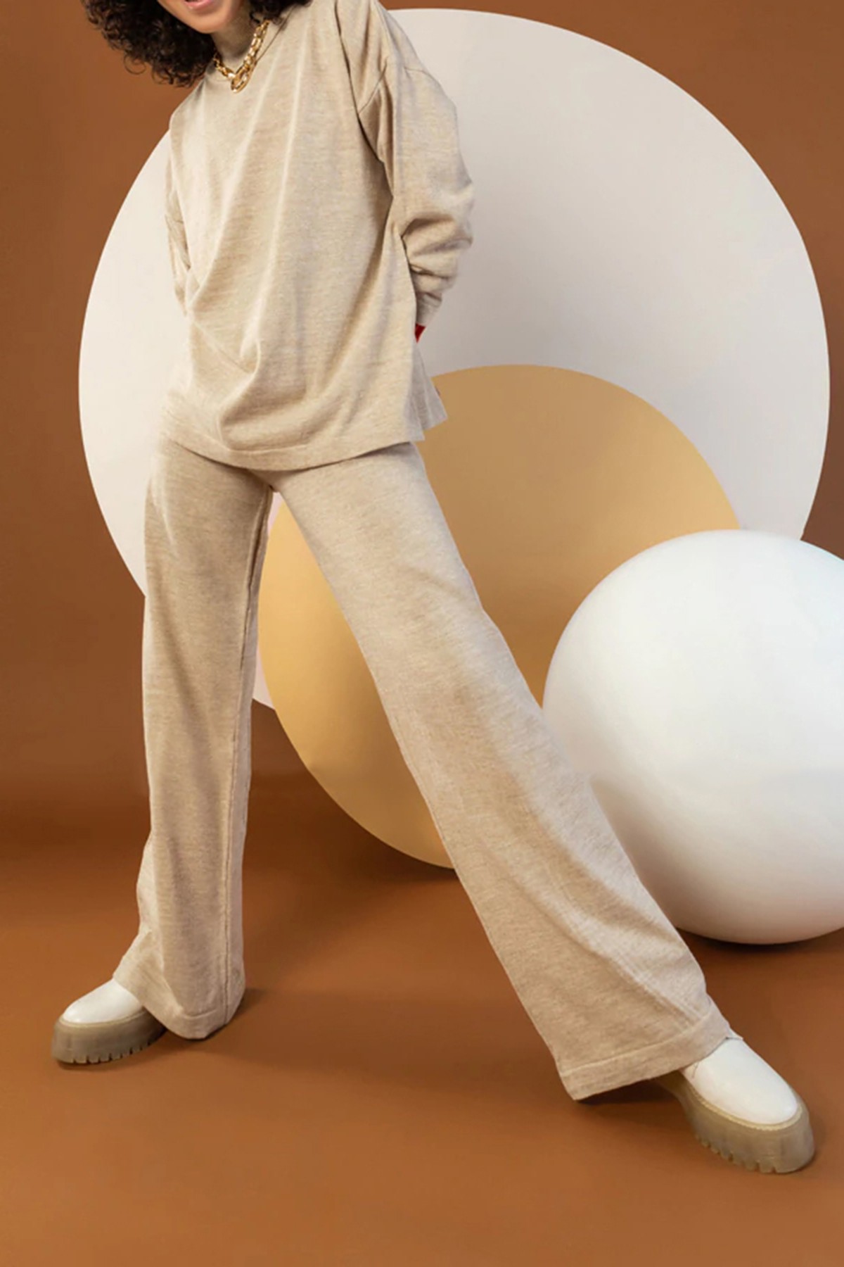 Taş Rengi Triko Kadın Pantolon Kazak Takım