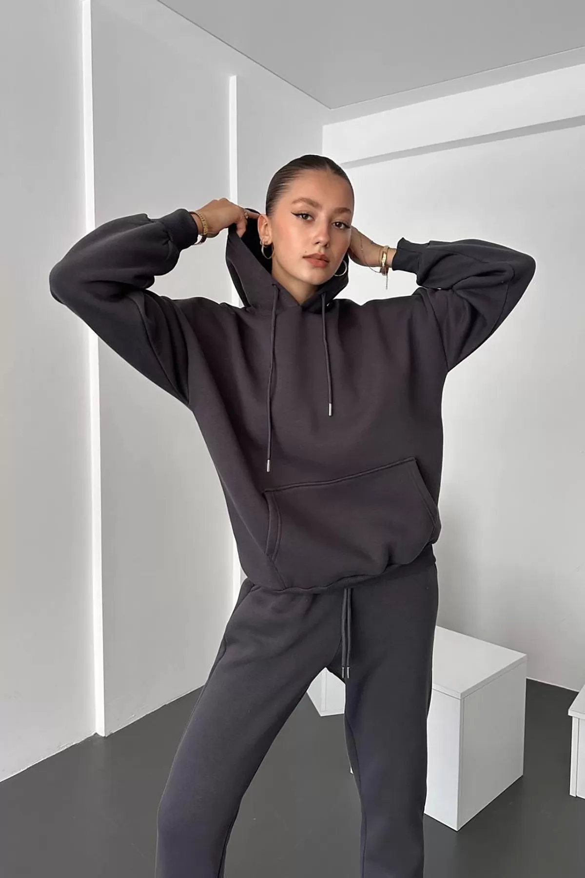 Kapüşonlu Antrasit Kadın Alt Üst Takım