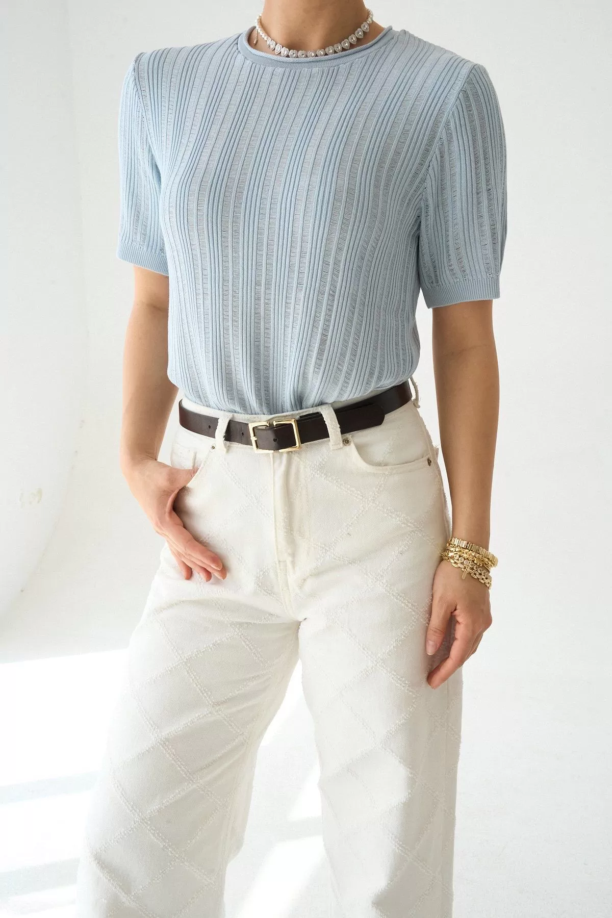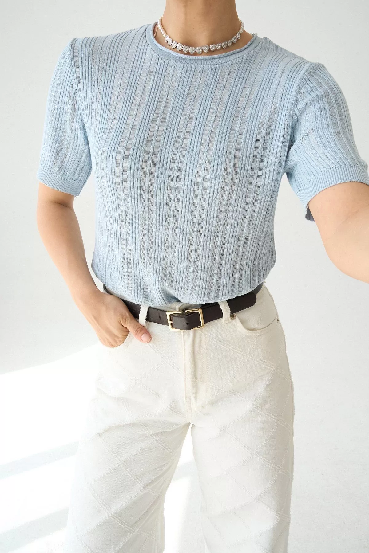 Kısa Kollu Bebe Mavi Merserize Triko Bluz