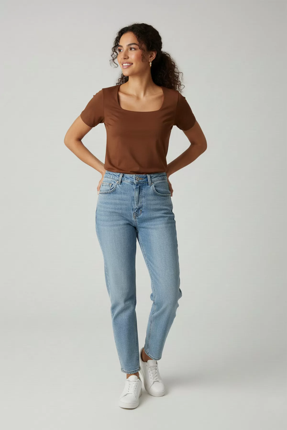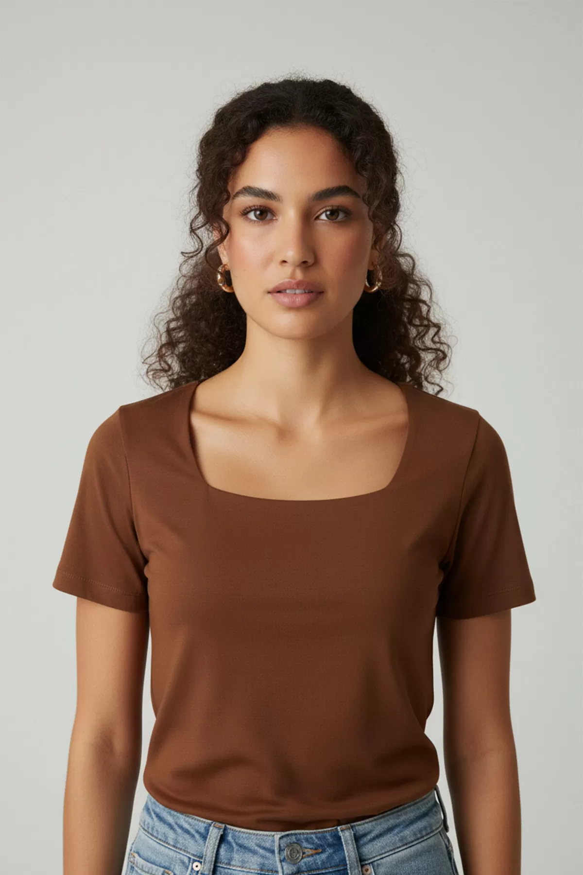 Kısa Kollu Kare Yaka Kahverengi Modal Kadın Tişört Kısa Kollu Kare Yaka Kahverengi Modal Kadın Tişört Kısa Kollu Kare Yaka Kahverengi Modal Kadın Tişört