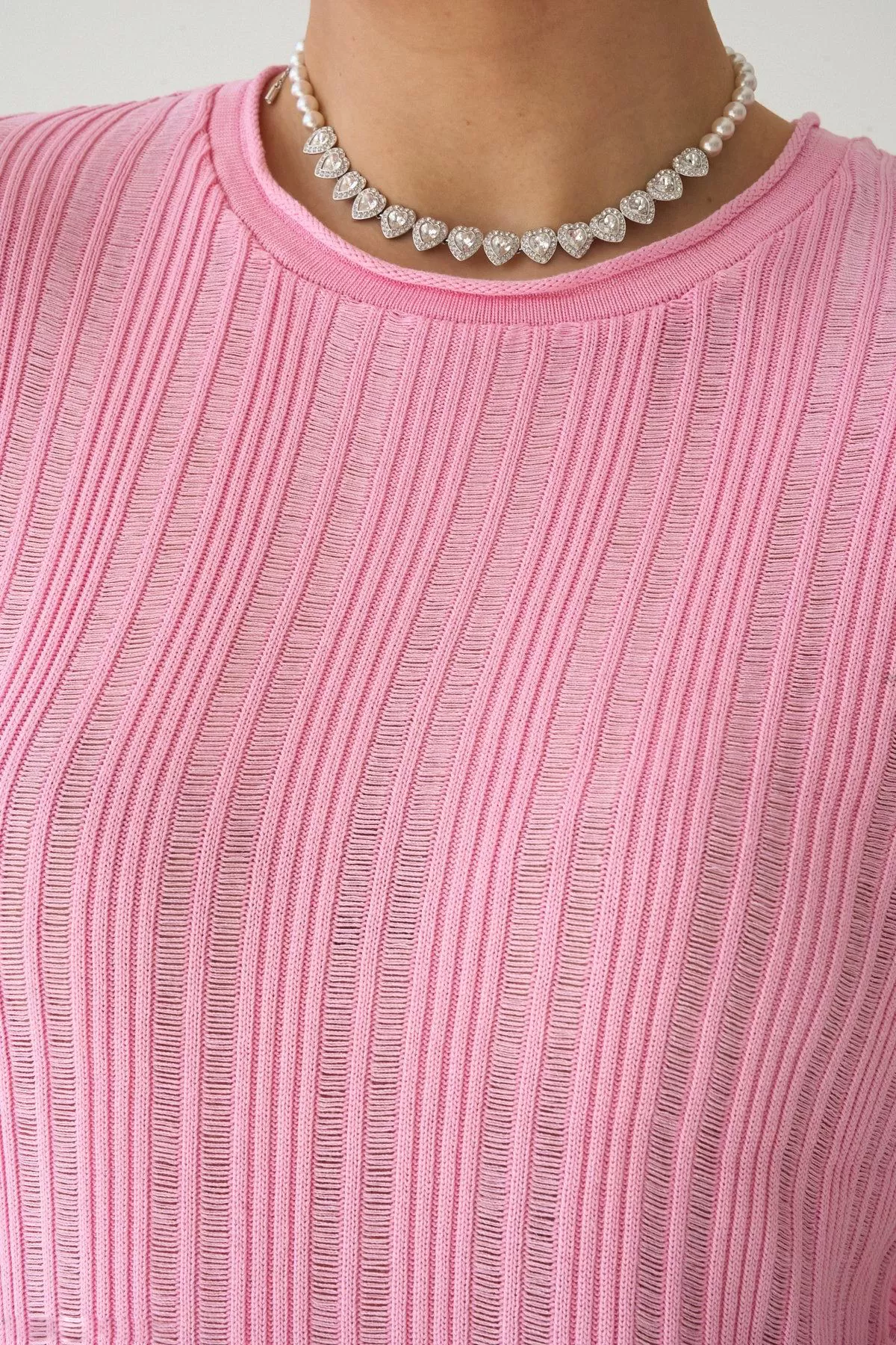 Kısa Kollu Pembe Merserize Triko Bluz