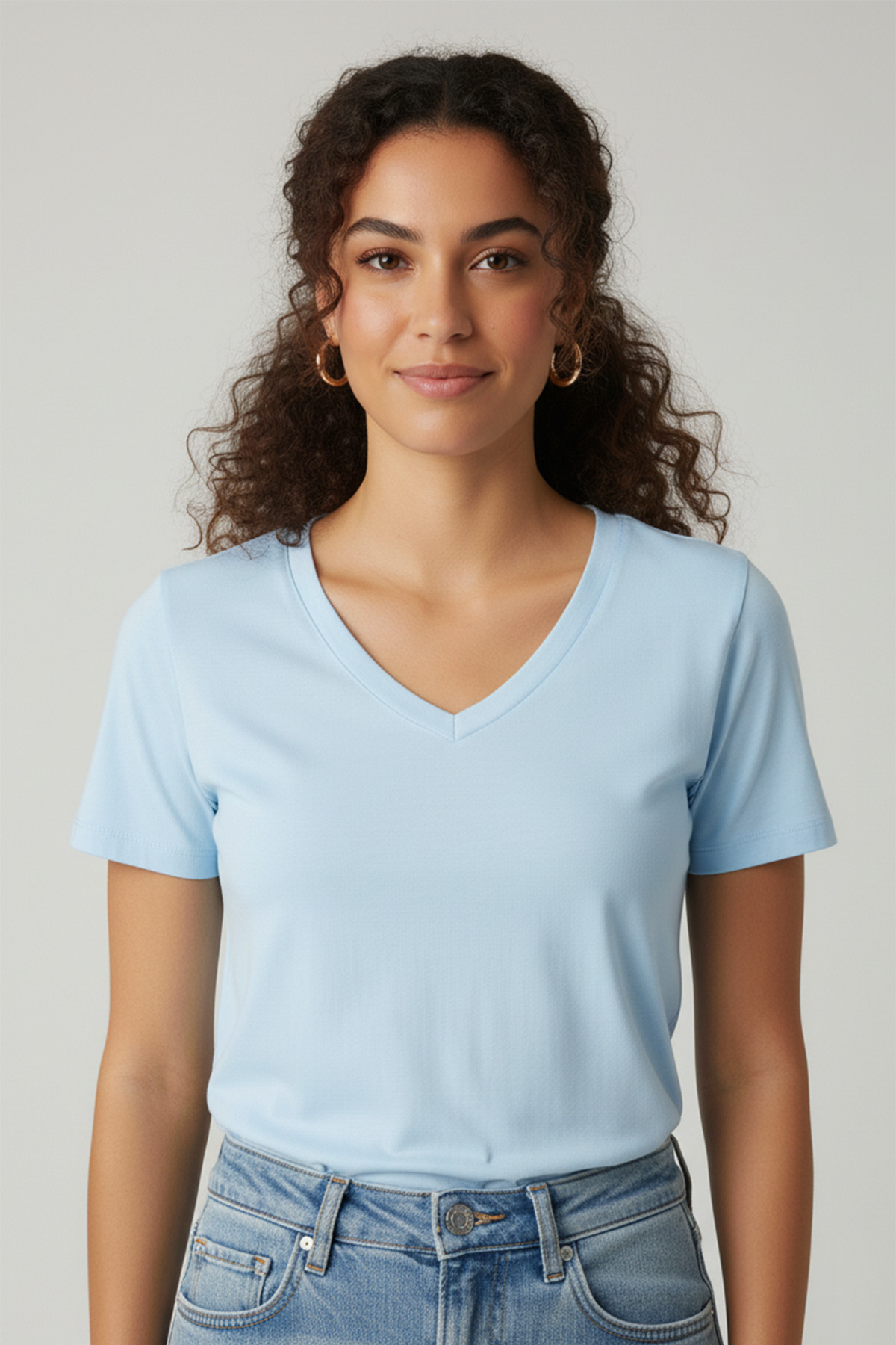 Kısa Kollu V Yaka Bebe Mavi Modal Kadın Tişört Kısa Kollu V Yaka Bebe Mavi Modal Kadın Tişört Kısa Kollu V Yaka Bebe Mavi Modal Kadın Tişört