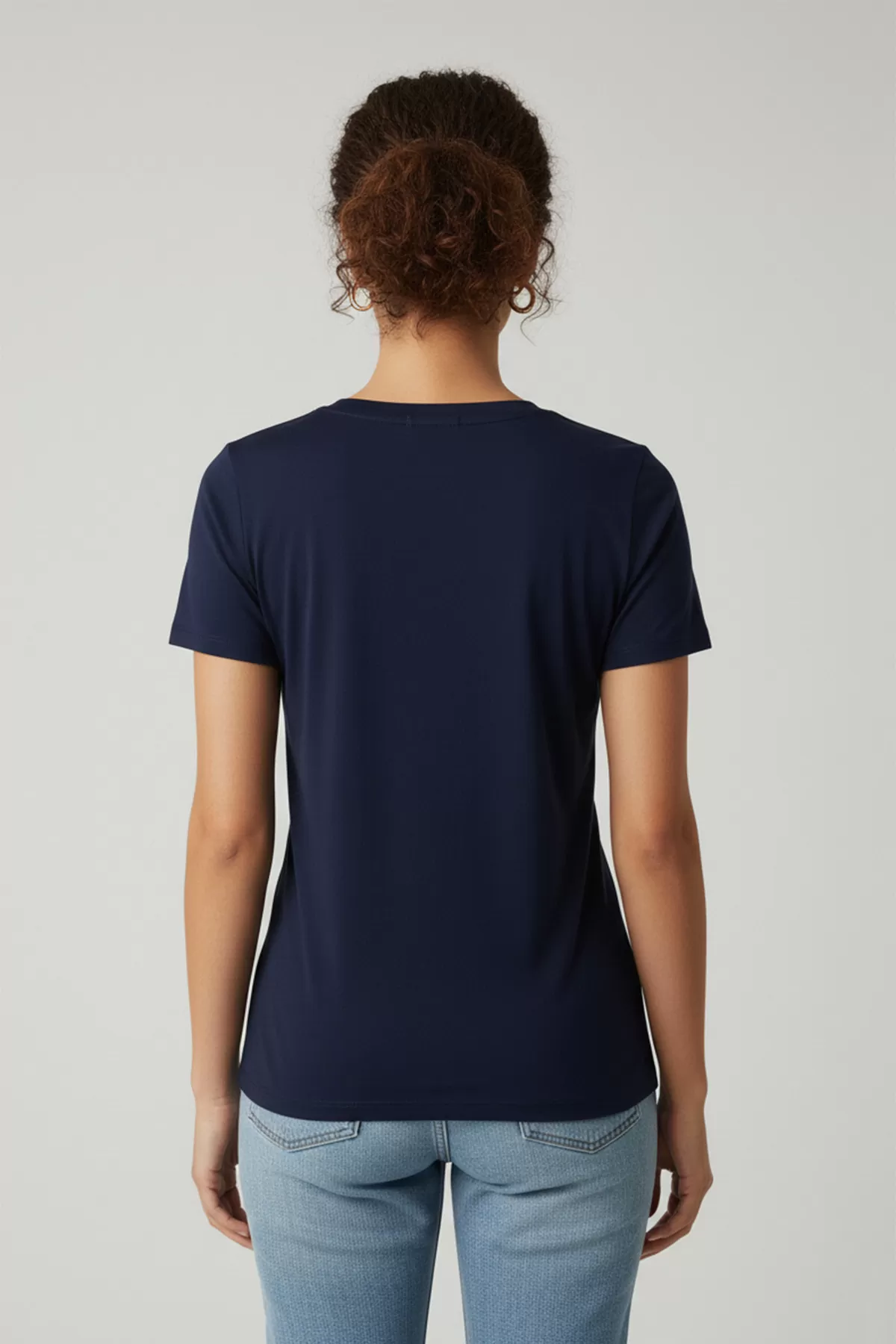Kısa Kollu V Yaka Lacivert Modal Kadın Tişört