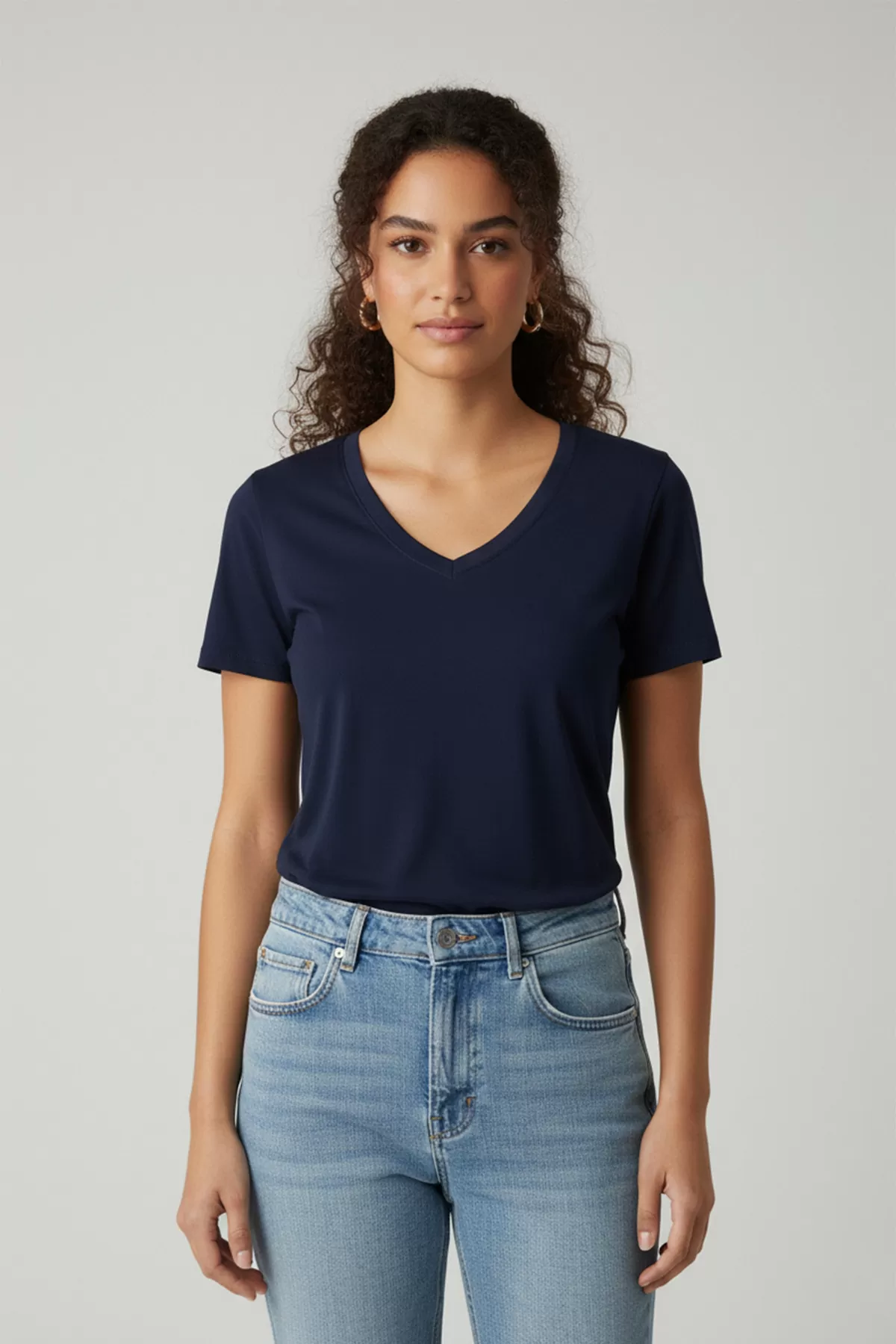 Kısa Kollu V Yaka Lacivert Modal Kadın Tişört Kısa Kollu V Yaka Lacivert Modal Kadın Tişört Kısa Kollu V Yaka Lacivert Modal Kadın Tişört