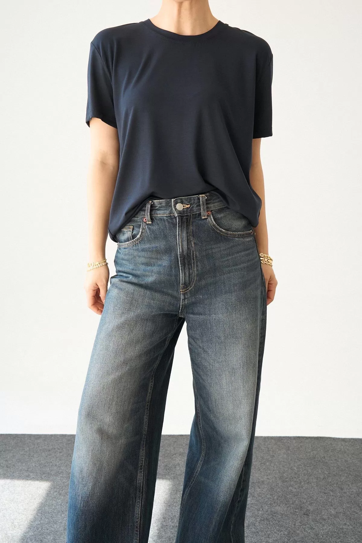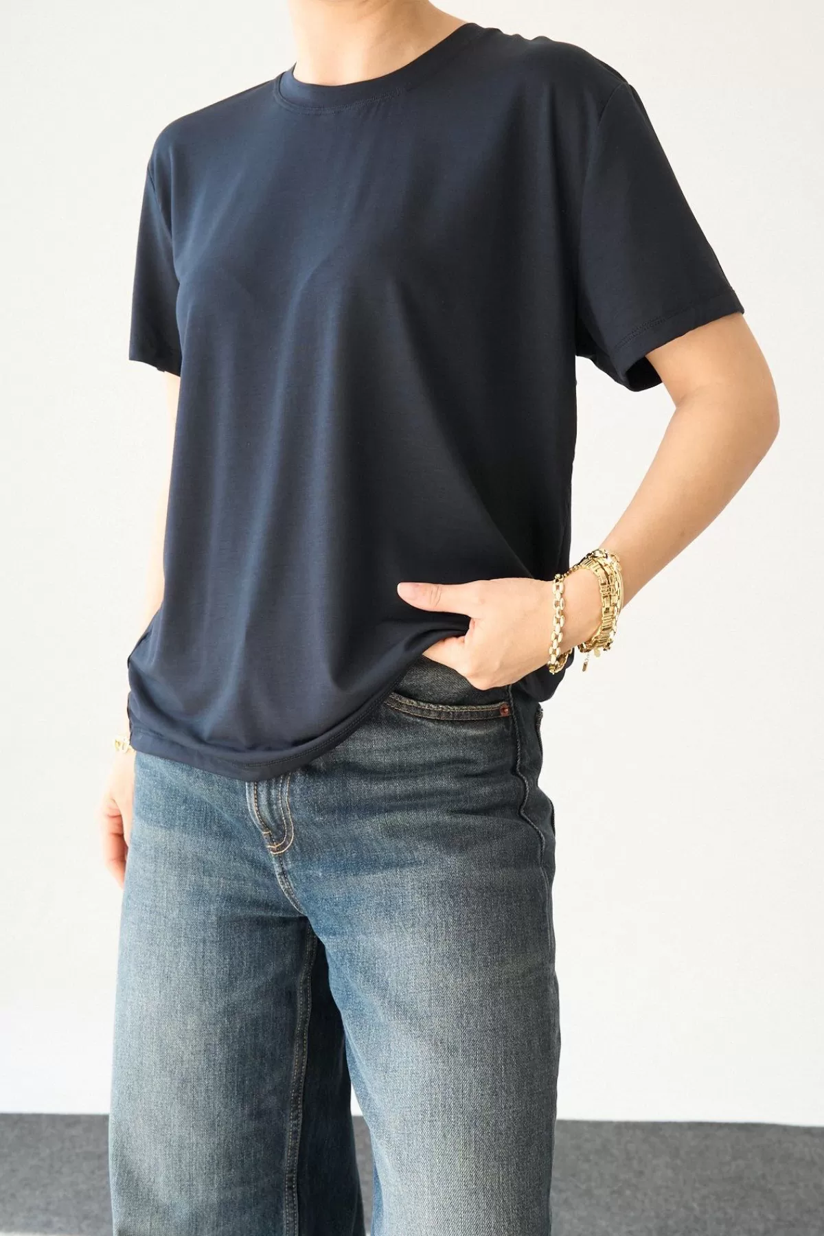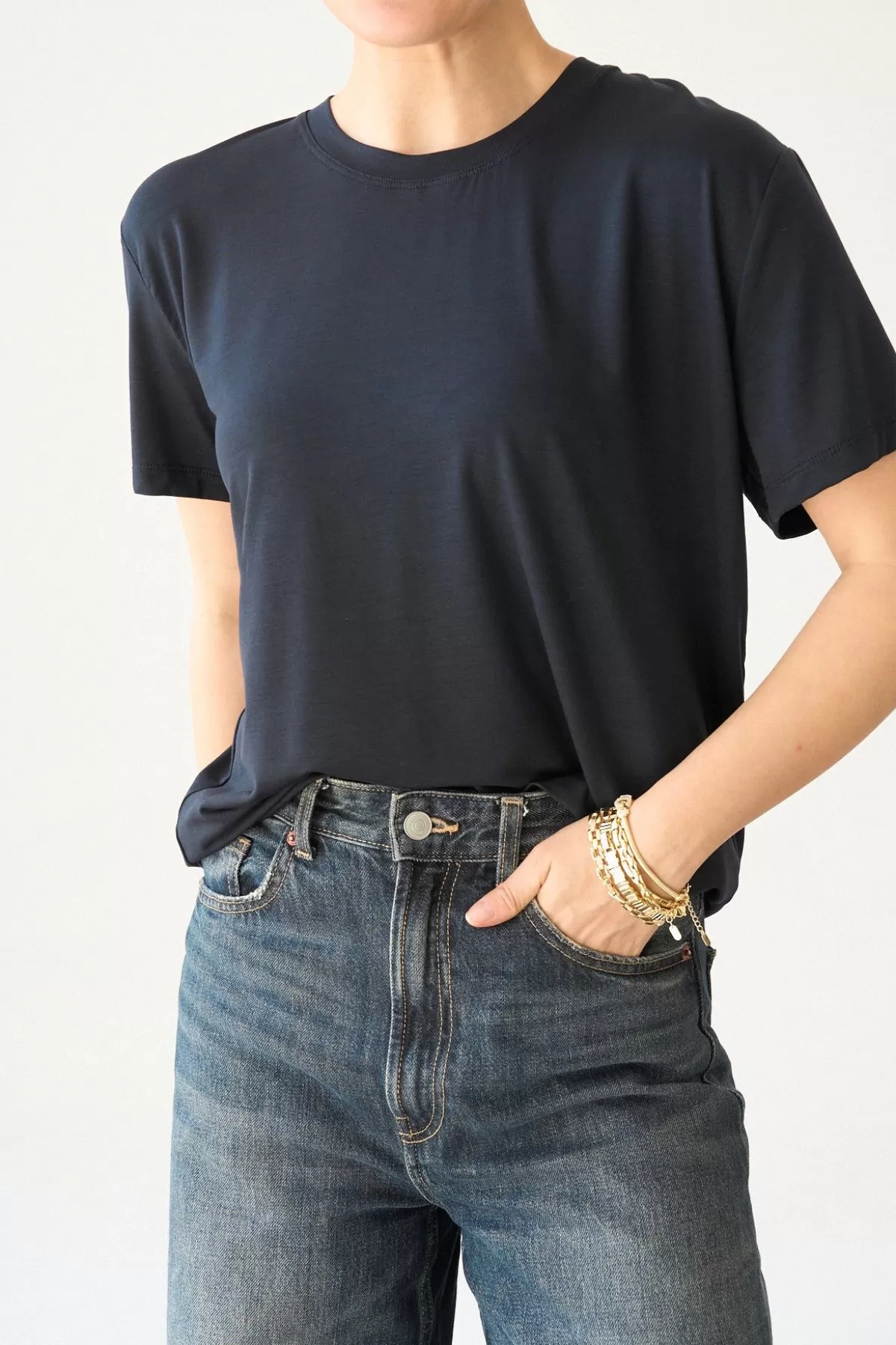 Koyu Gri Pamuklu Basic Kadın Tişört