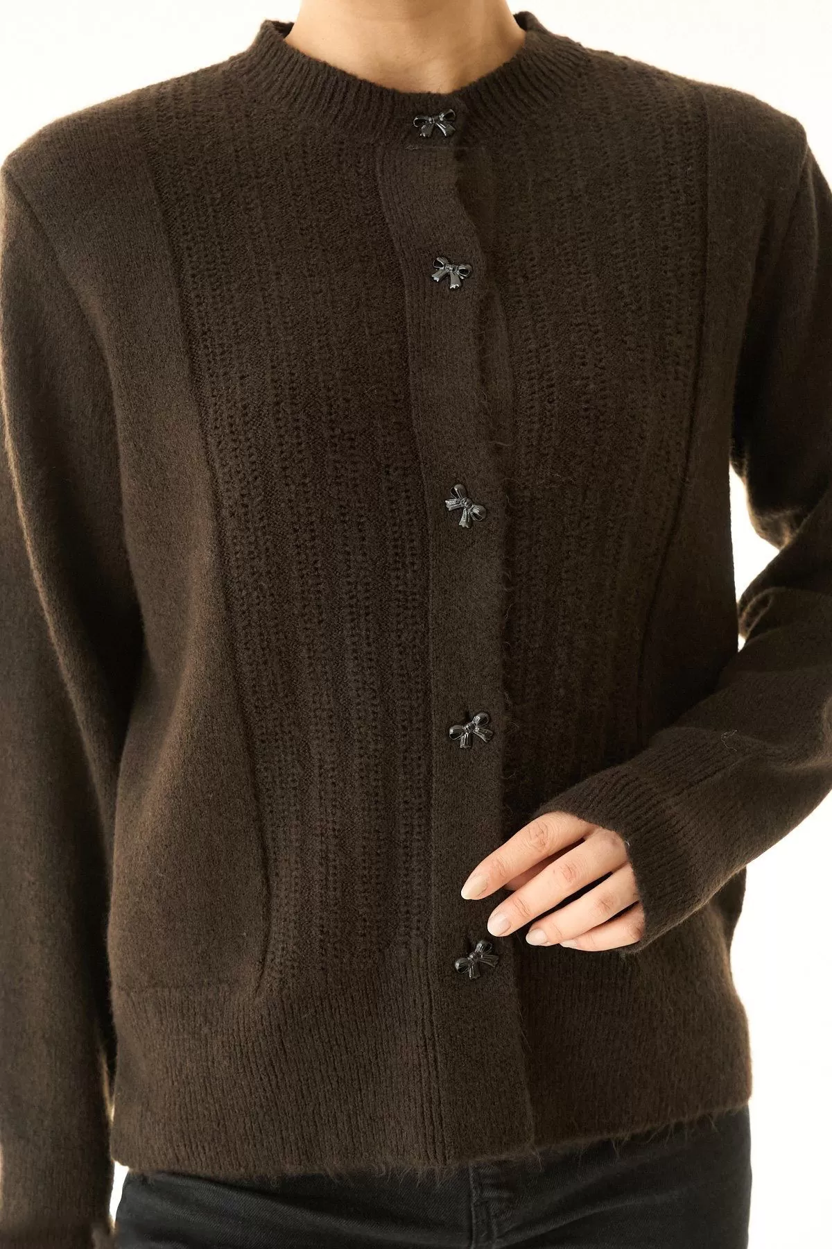 Facebook Pixel Koyu Kahverengi Yünlü Triko Kadın Hırka, Fiyatı 752.47 TL | Nare Giyim