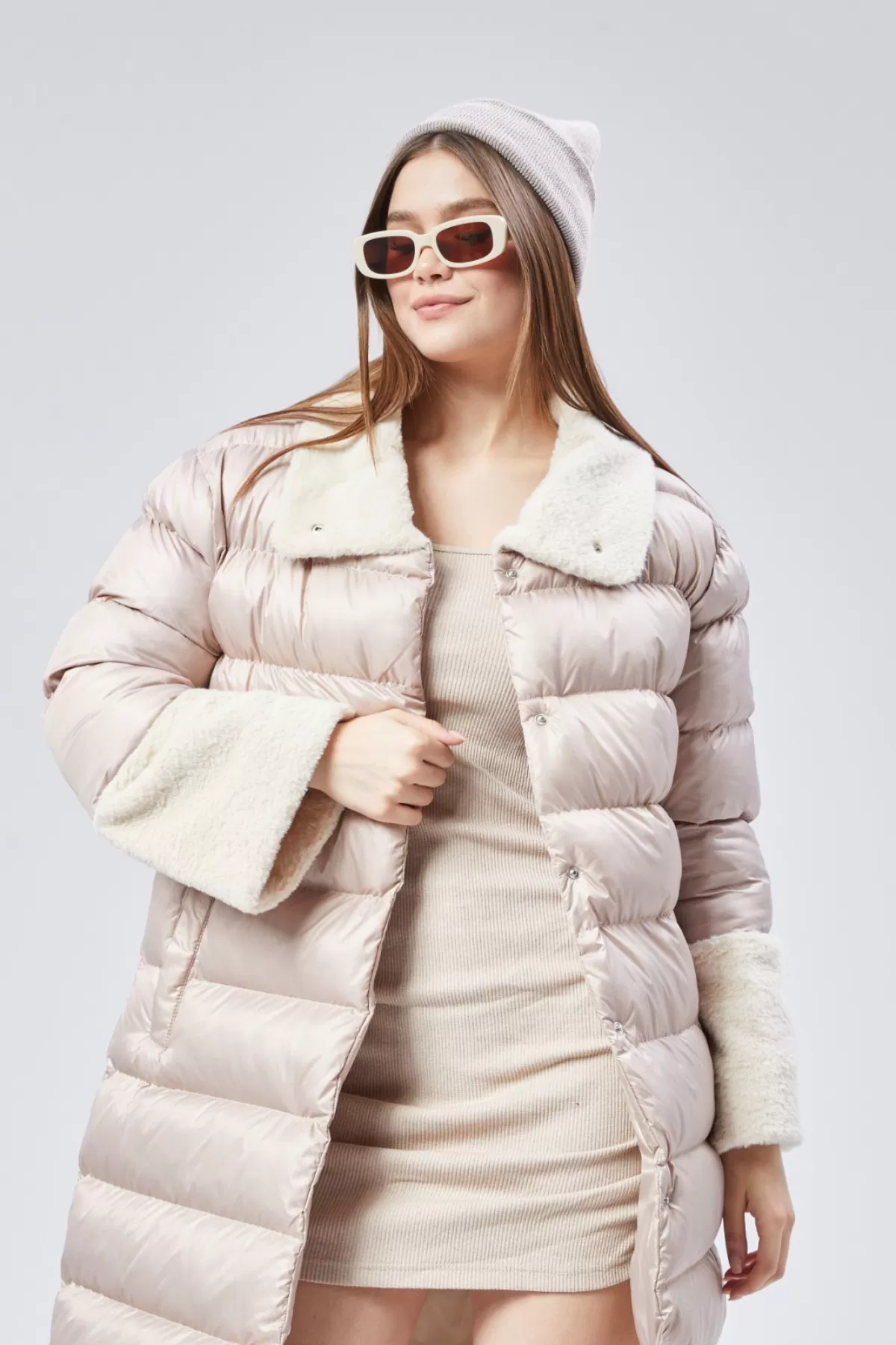 Facebook Pixel Kürklü Bej Kadın Kaban, Fiyatı 759.47 TL | Nare Giyim
