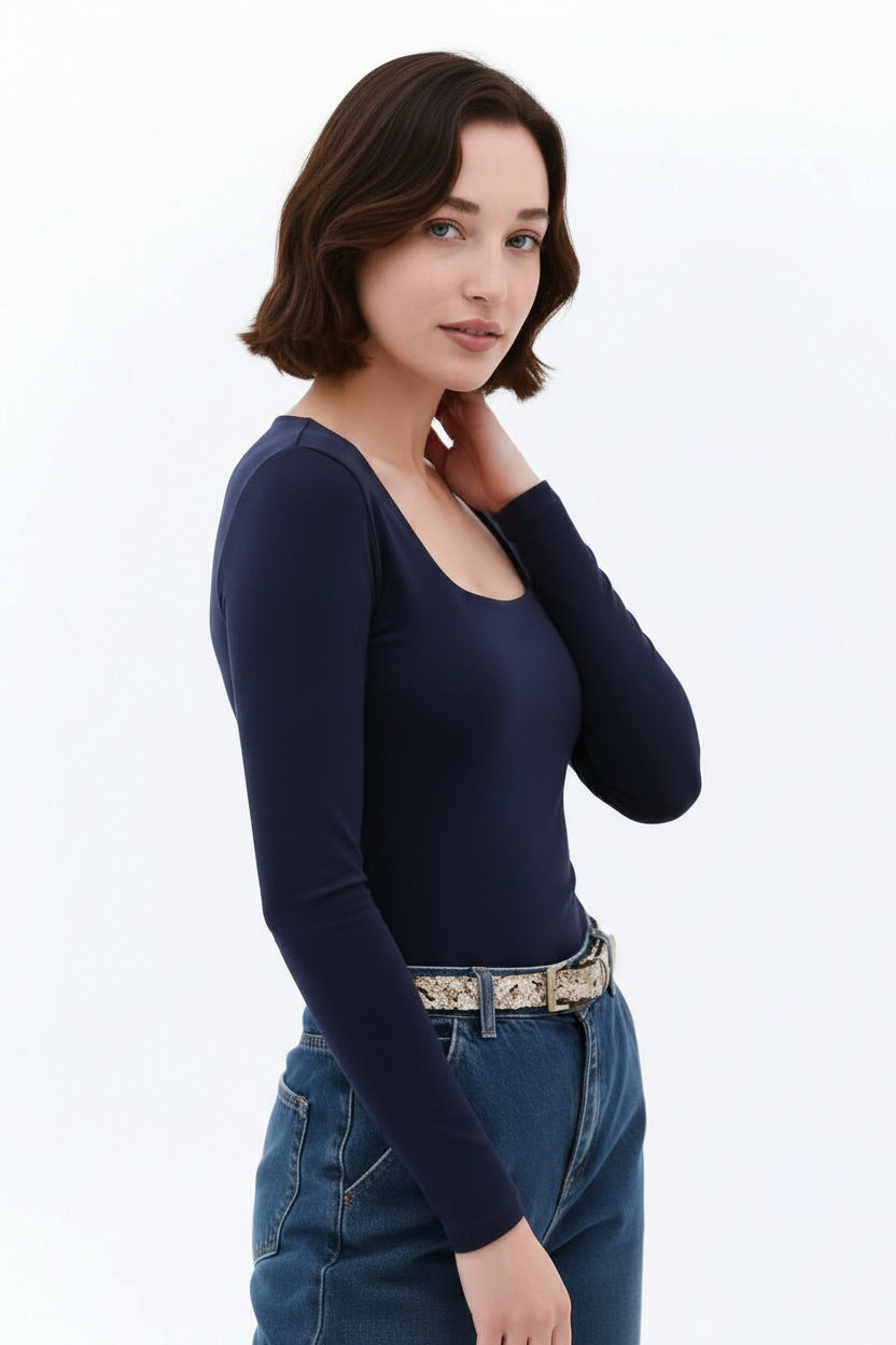 Lacivert Buzzy Kumaş Kare Yaka Body