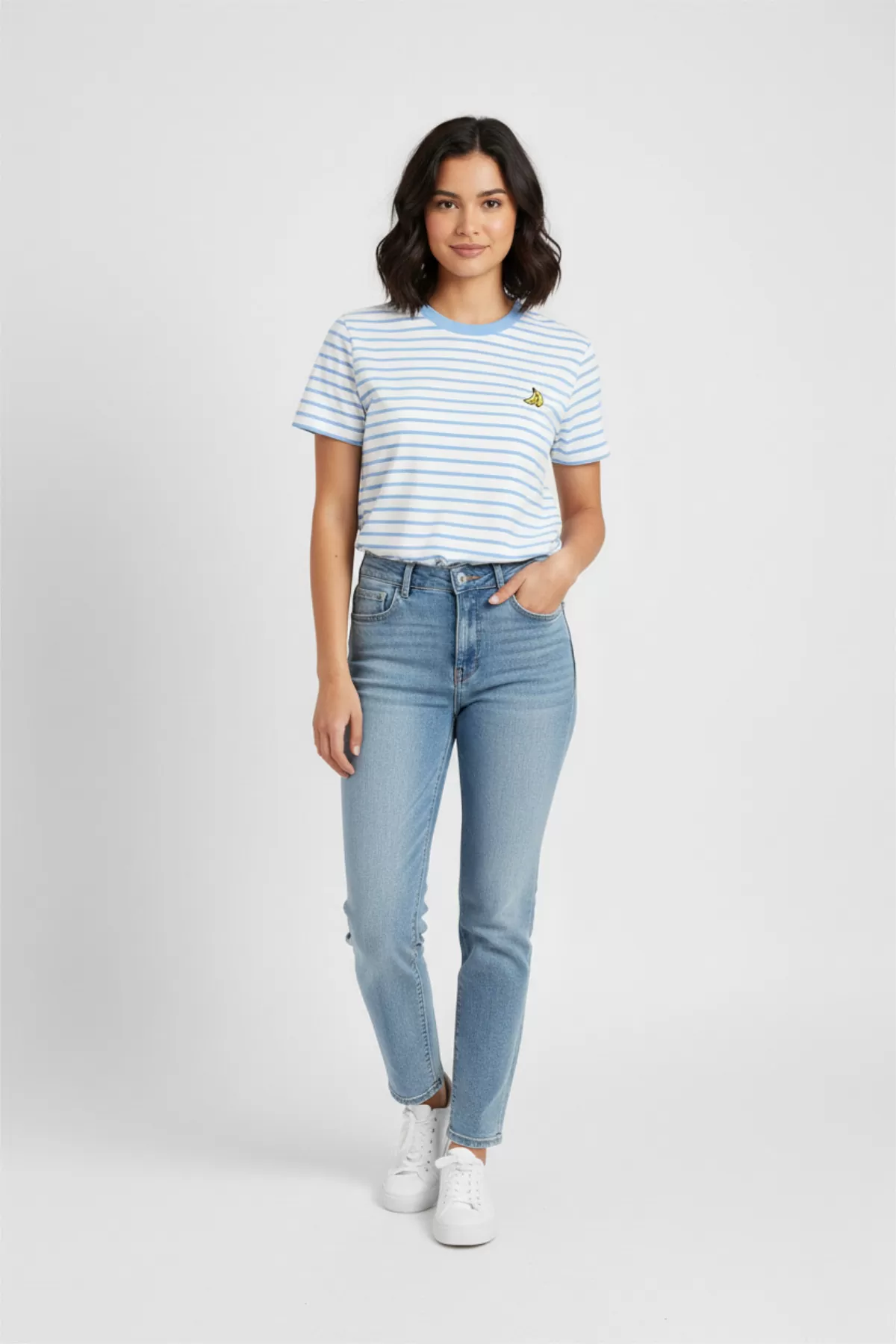 Mavi Beyaz Çizgili Pamuklu Nakışlı Kadın Tişört Mavi Beyaz Çizgili Pamuklu Nakışlı Kadın Tişört Mavi Beyaz Çizgili Pamuklu Nakışlı Kadın Tişört