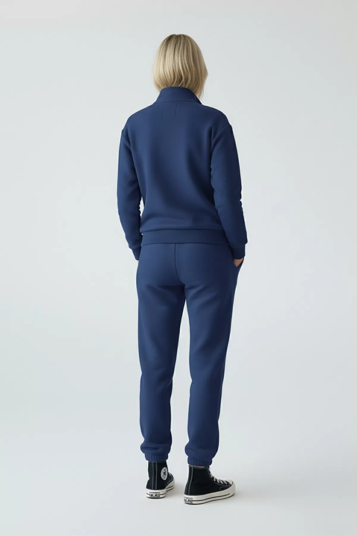 Yüzde yüz pamuklu kumaş Mavi Pamuklu Üç İplik Şardonlu Kadın Eşofman Takımı