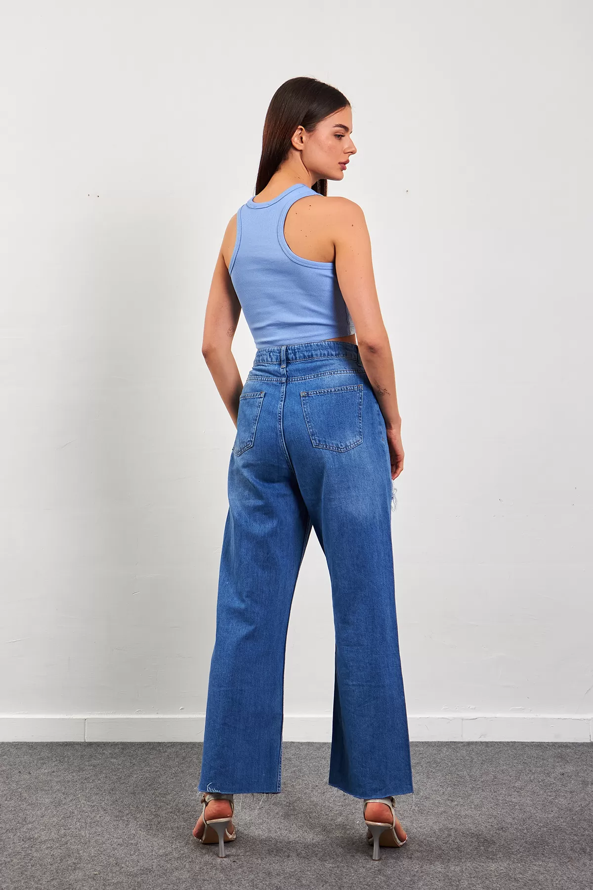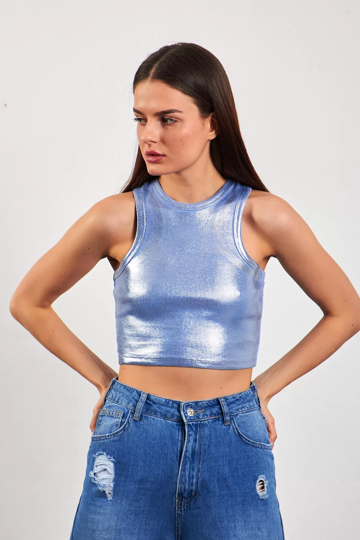 Mavi Varaklı Fitilli Kadın Atlet
