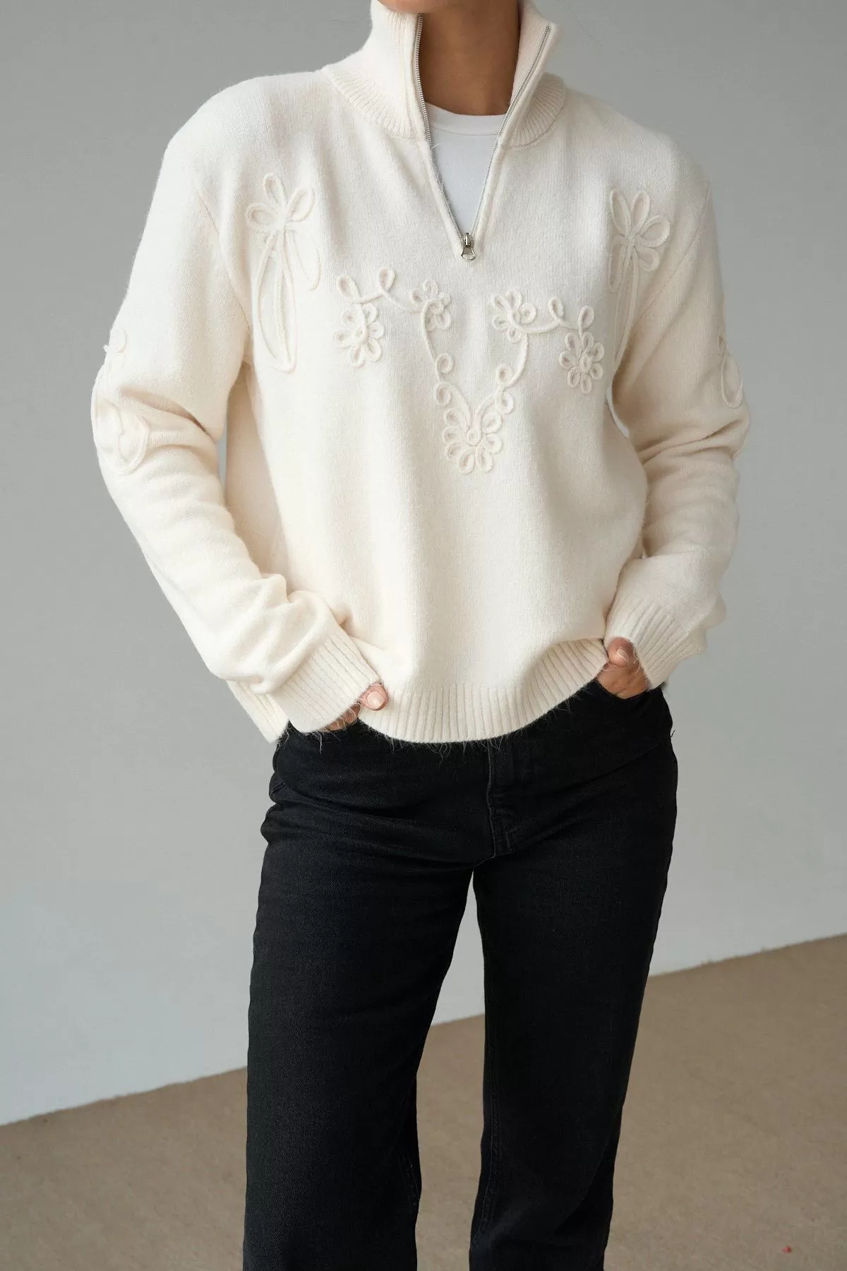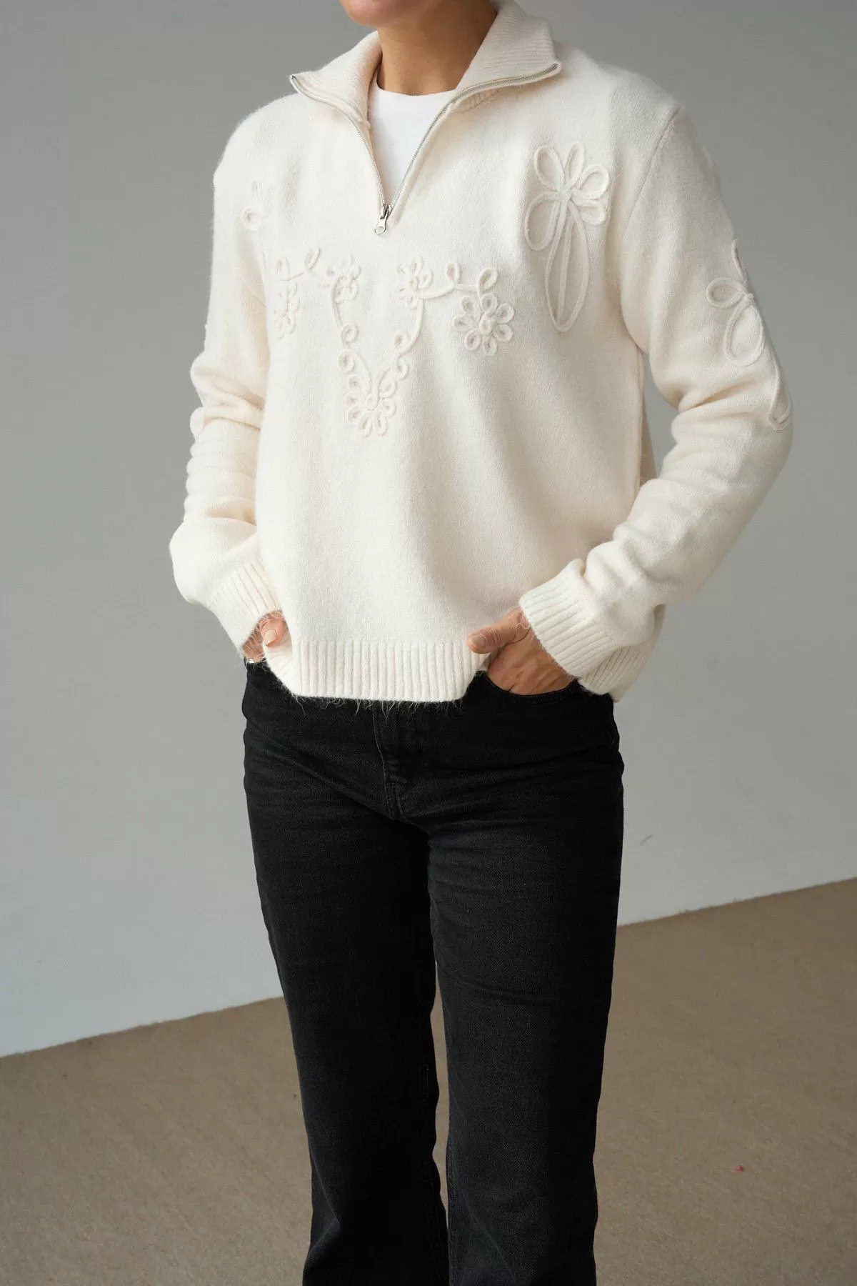 Nakış Detaylı Krem Pamuklu Kadın Kazak Nakış Detaylı Krem Pamuklu Kadın Kazak Nakış Detaylı Krem Pamuklu Kadın Kazak