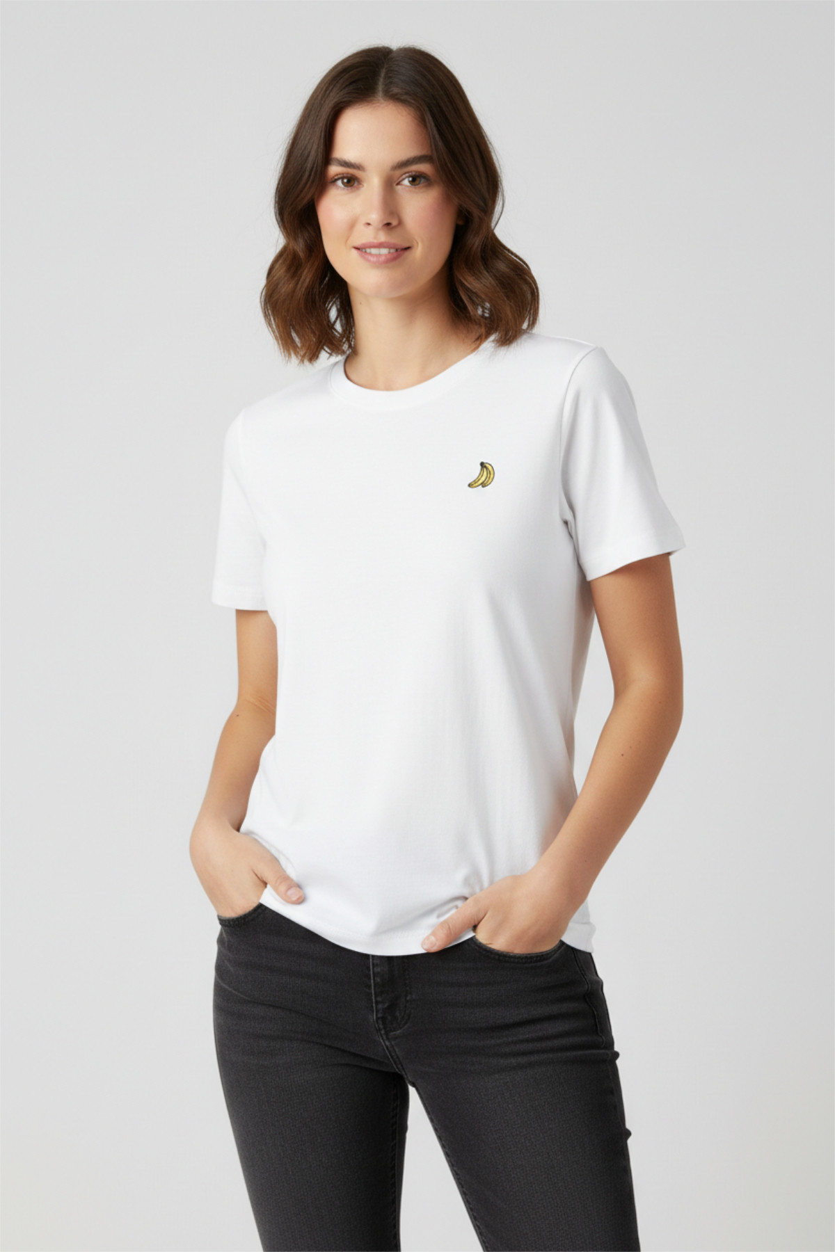 Yüzde yüz pamuklu kumaş Nakışlı Beyaz Pamuklu Kadın Tişört
