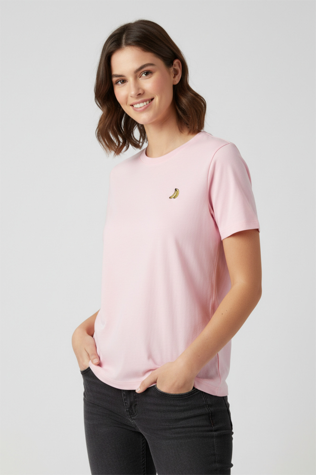 Yüzde yüz pamuklu kumaş Nakışlı Pembe Pamuklu Kadın Tişört
