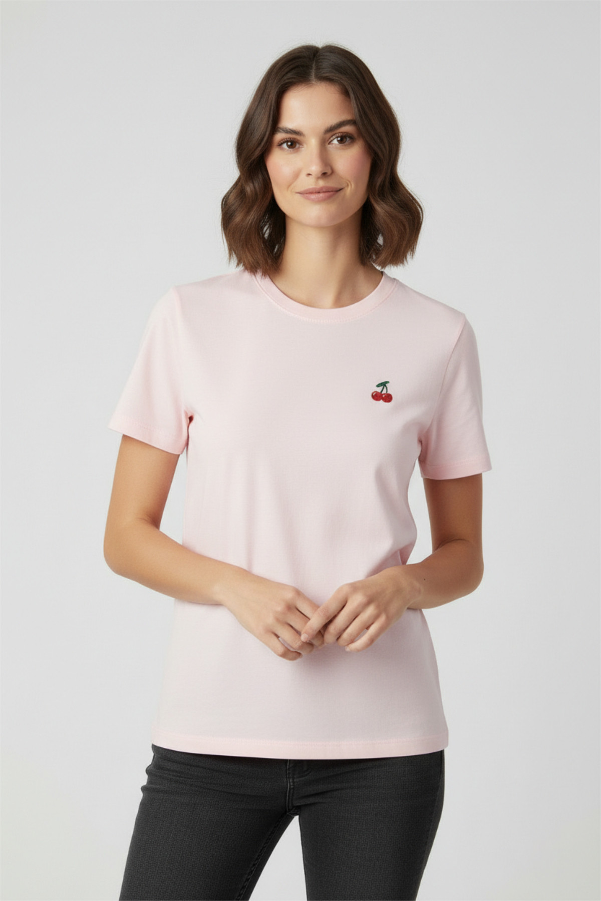 Yüzde yüz pamuklu kumaş Nakışlı Pembe Pamuklu Kadın Tişört