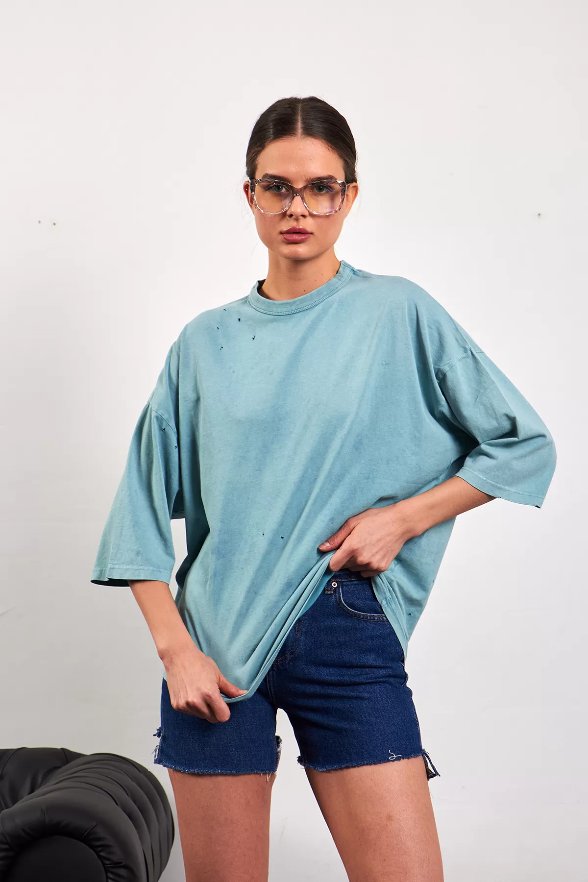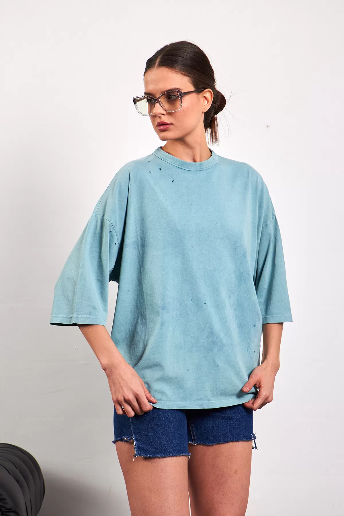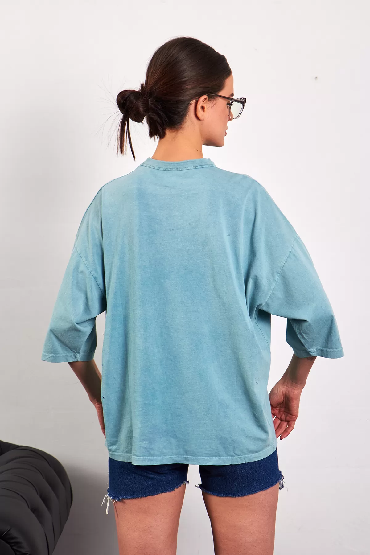 Oversize Yıkamalı Yeşil Kadın Tişört