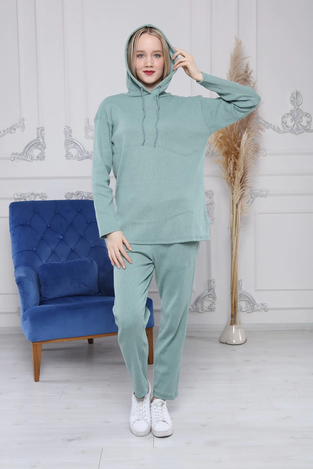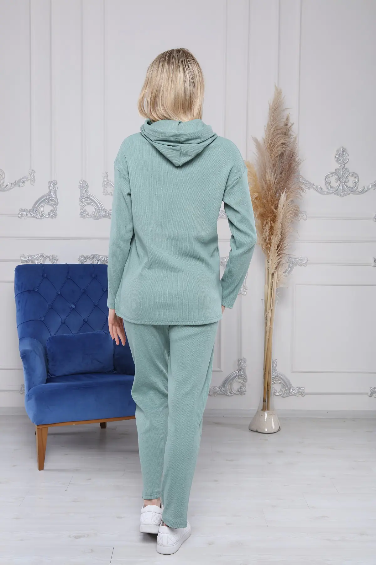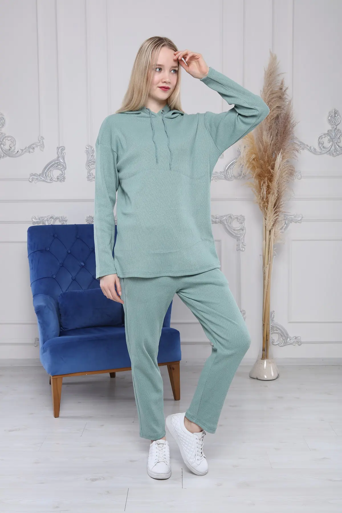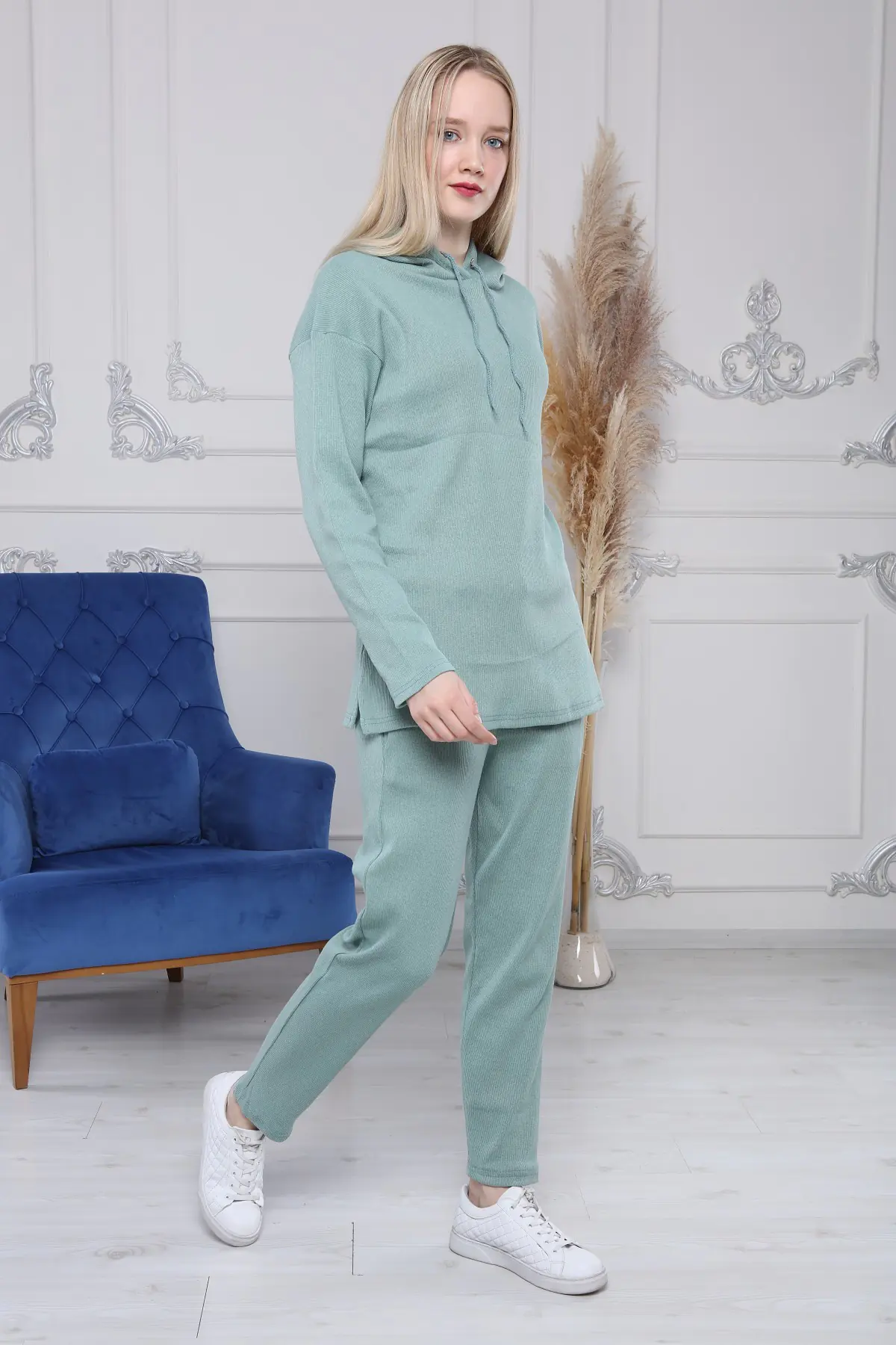Kapüşonlu Çağla Yeşili Kaşkorse Kadın Eşofman Takımı