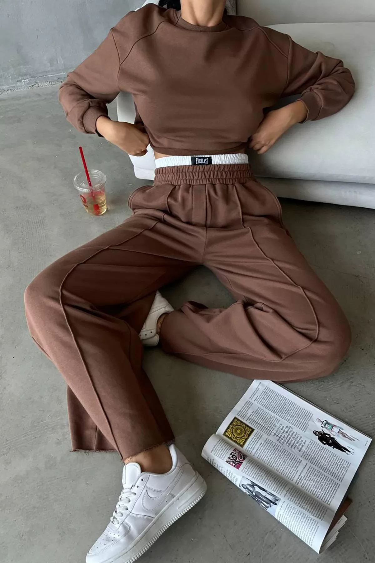 Pamuklu Kahverengi Kadın Eşofman Takımı Pamuklu Kahverengi Kadın Eşofman Takımı